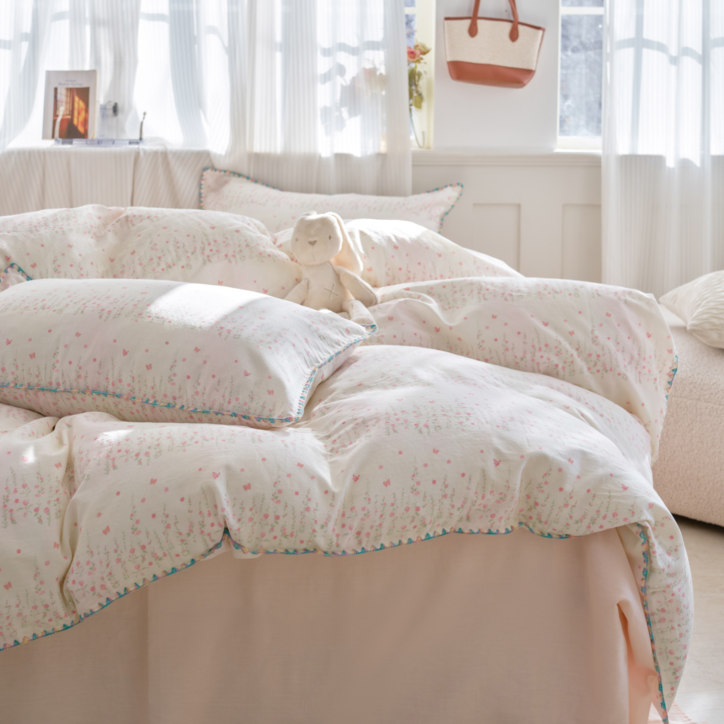 (总)洋铭区(原狠狠爱) 2026新款春季全棉彩边双层纱四件套,爱心宝莉,波斯小懒狗,繁花兔兔,格格小熊,海蓝小木马,红格小马,红枣小兔,花朵兔兔,焦糖小熊,兰花香,绿芽小马,萌宠小分队,奶茶蝴蝶结,奶糕熊熊,汽车派对,桃桃粉花,甜果小象,图图小狮子,幸运小可爱,熊猫嘟嘟,遇见粉花,月光宝宝