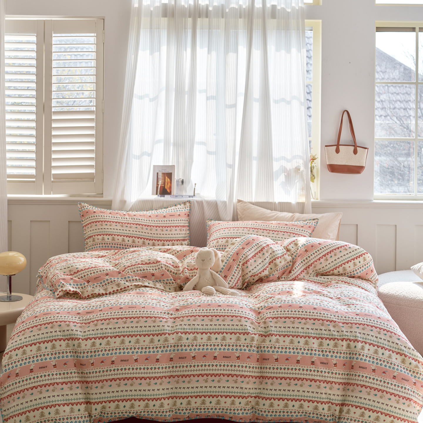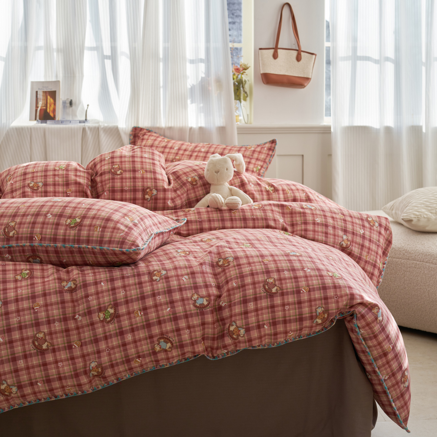 (总)洋铭区(原狠狠爱) 2026新款春季全棉彩边双层纱四件套,爱心宝莉,波斯小懒狗,繁花兔兔,格格小熊,海蓝小木马,红格小马,红枣小兔,花朵兔兔,焦糖小熊,兰花香,绿芽小马,萌宠小分队,奶茶蝴蝶结,奶糕熊熊,汽车派对,桃桃粉花,甜果小象,图图小狮子,幸运小可爱,熊猫嘟嘟,遇见粉花,月光宝宝