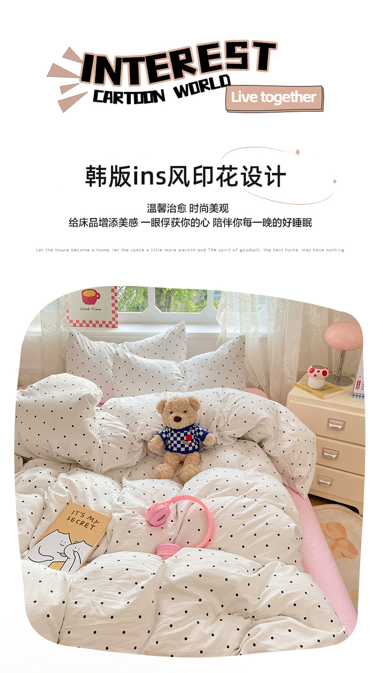 当前位置: 91家纺网 > 商品网购 > 床品套件 > 四件套 > 其它四件套 > 优尚佳生活馆 2026新款A类水洗ins风亲肤印花四件套 点点温馨