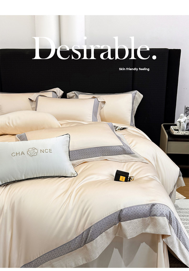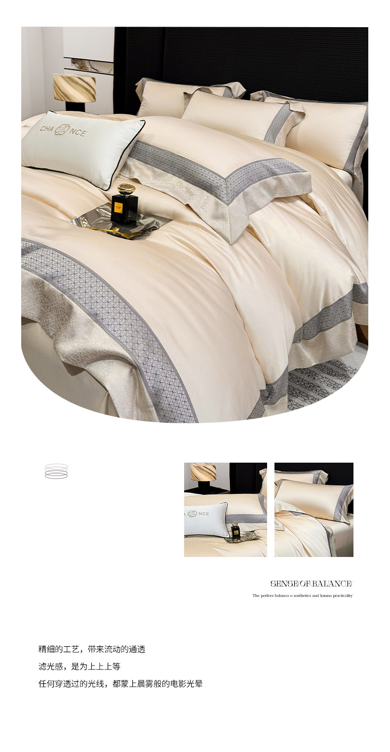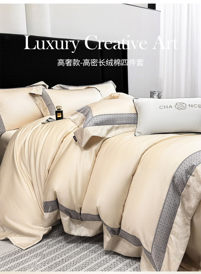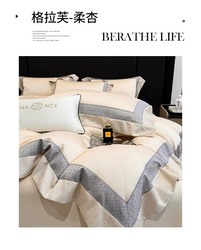 商品名称: 2026新品高端轻奢风A类贡缎长绒棉四件套纯棉重工刺绣被套床单高级感床笠床上用品-格拉芙 格拉芙-柔杏