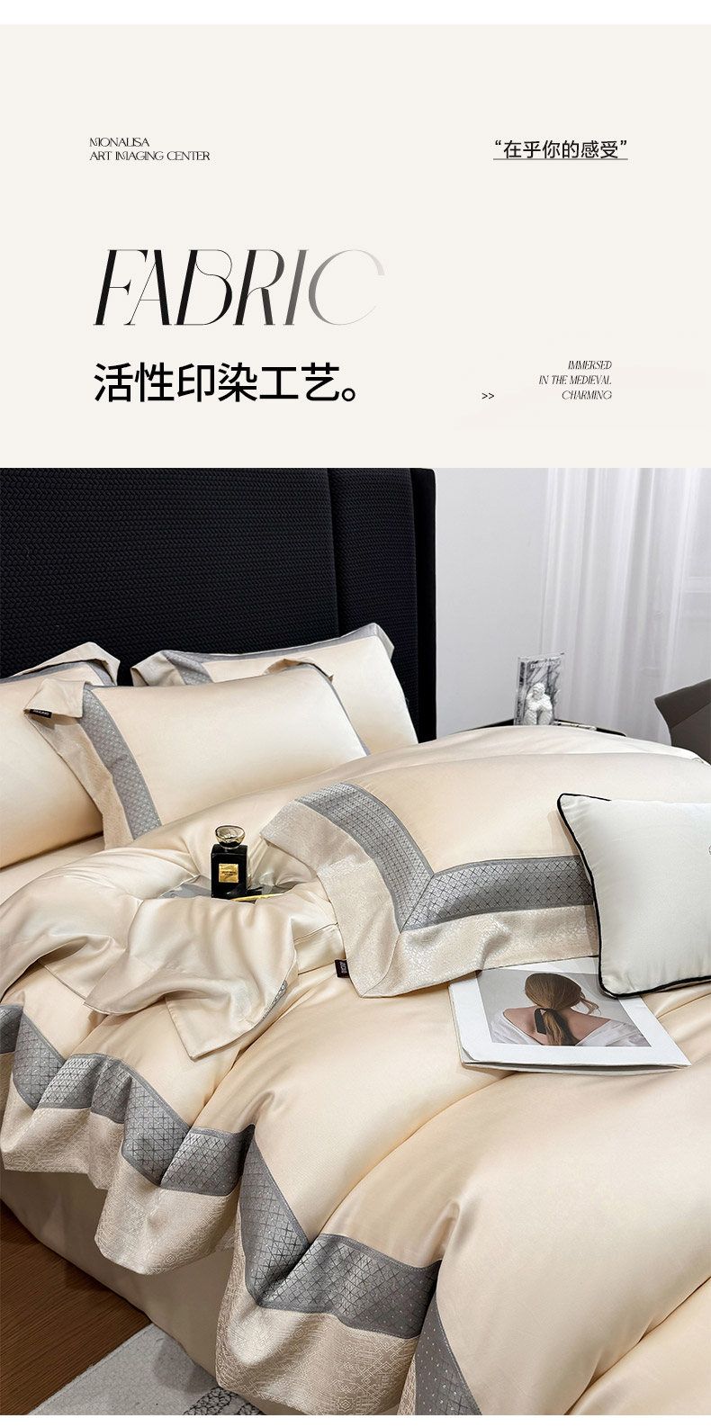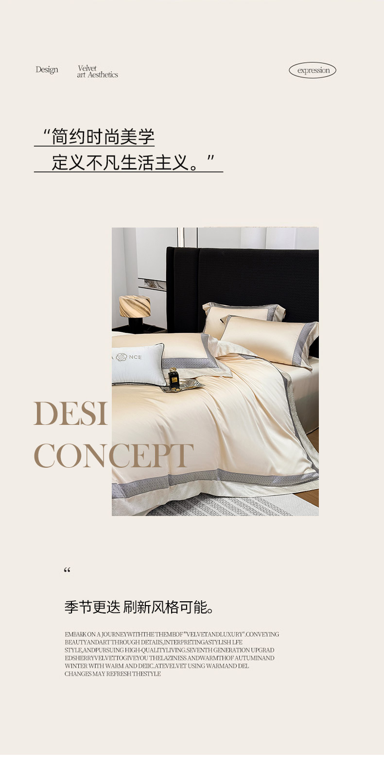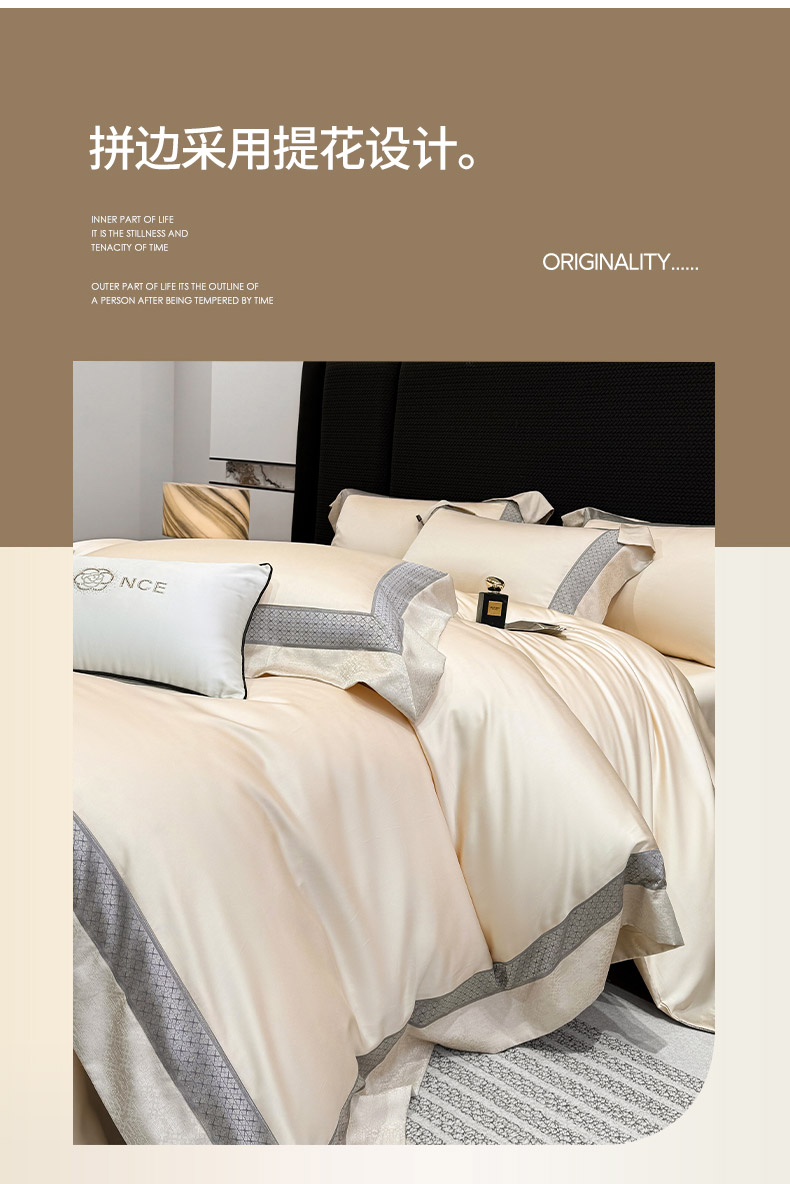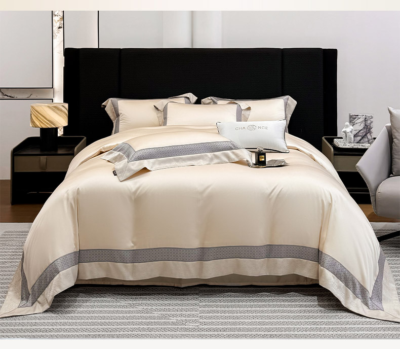 商品名称: 2026新品高端轻奢风A类贡缎长绒棉四件套纯棉重工刺绣被套床单高级感床笠床上用品-格拉芙 格拉芙-柔杏