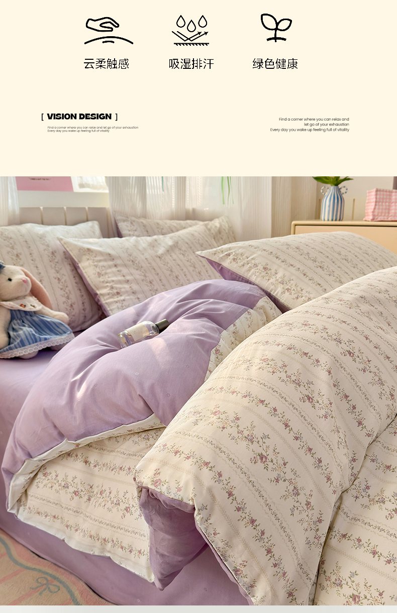 当前位置: 91家纺网 > 商品网购 > 床品套件 > 四件套 > 全棉普通四件套 > 梵克保罗 2026春夏新款ins小清新40支全棉13372四件套学生三件套单被套单枕套系列-第一批(四件套) 含羞草