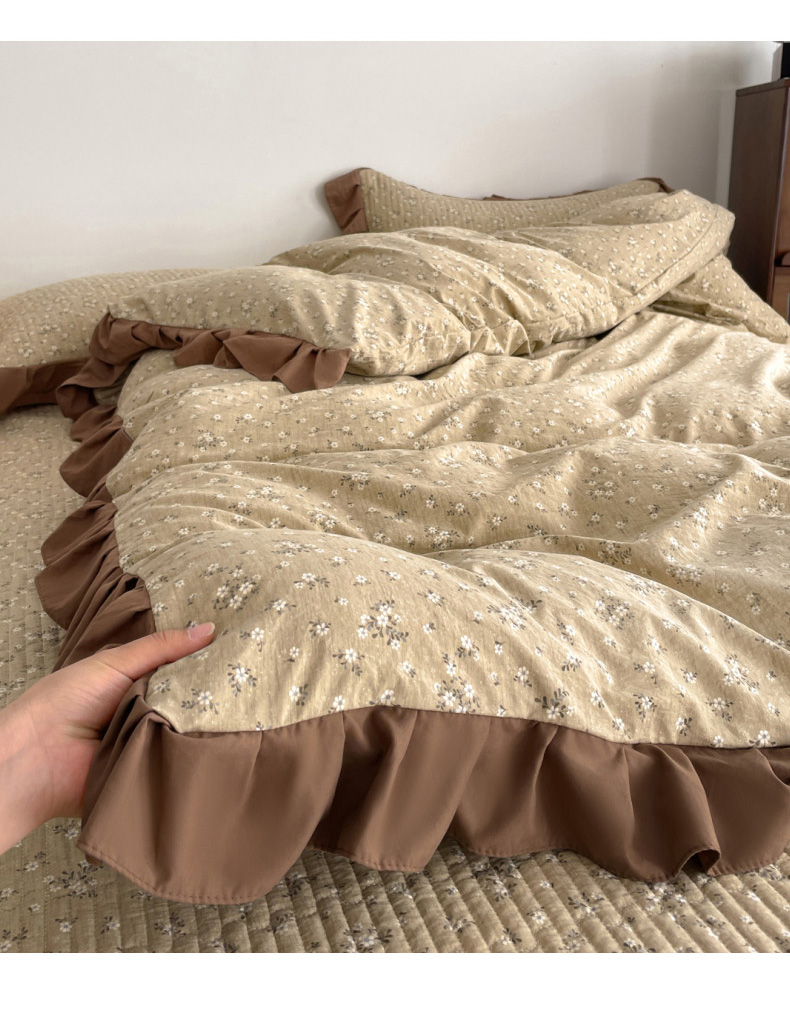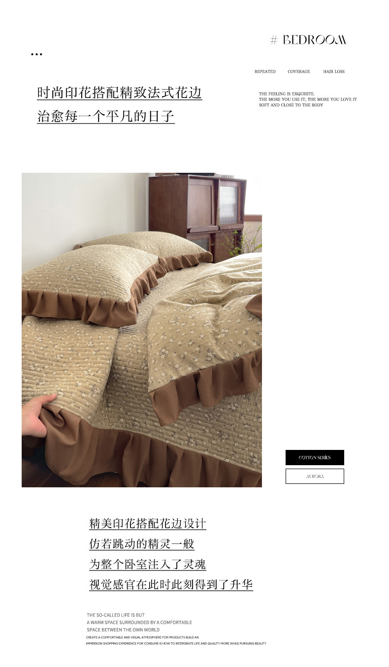 慕澄家纺 2026新款高克重仿棉碎花床盖 小白花