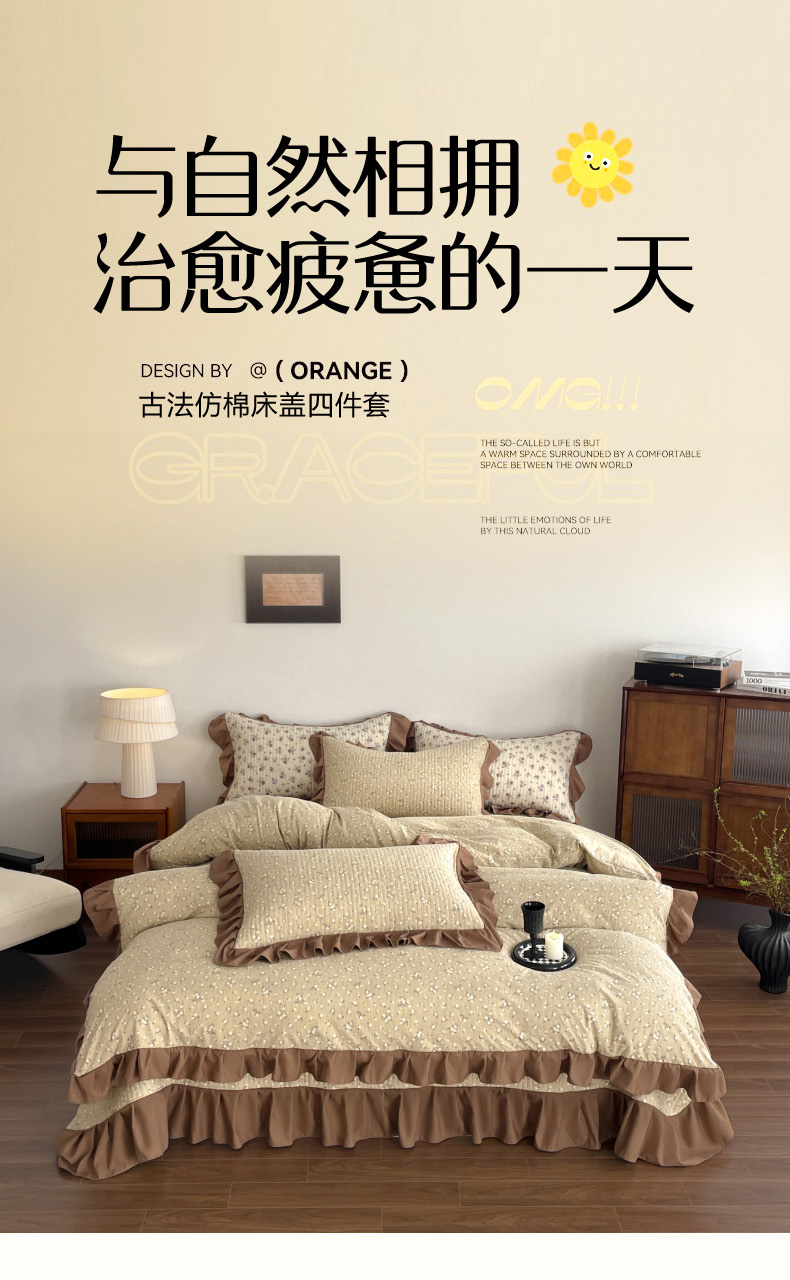 (总)慕澄家纺 2026新款高克重仿棉碎花床盖四件套,午后,春来,花间小马,蓝梦,漫漫,梦回,绵绵,情书,小白花