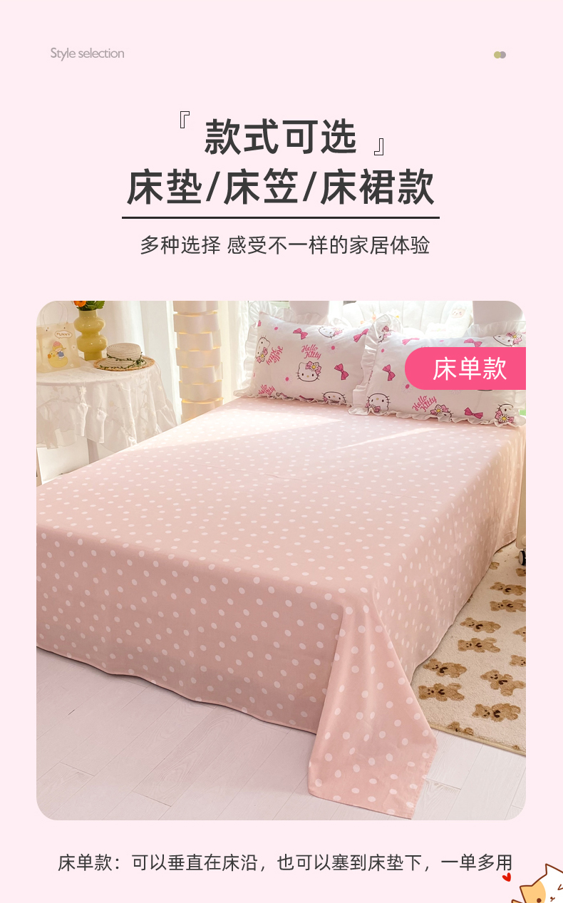 商品名称:(总)玉元坊 2026新款正版授权三丽鸥系列全棉纯棉床单四件套学生三件套-凯蒂猫系列