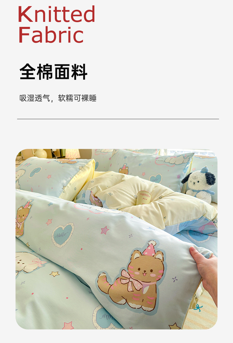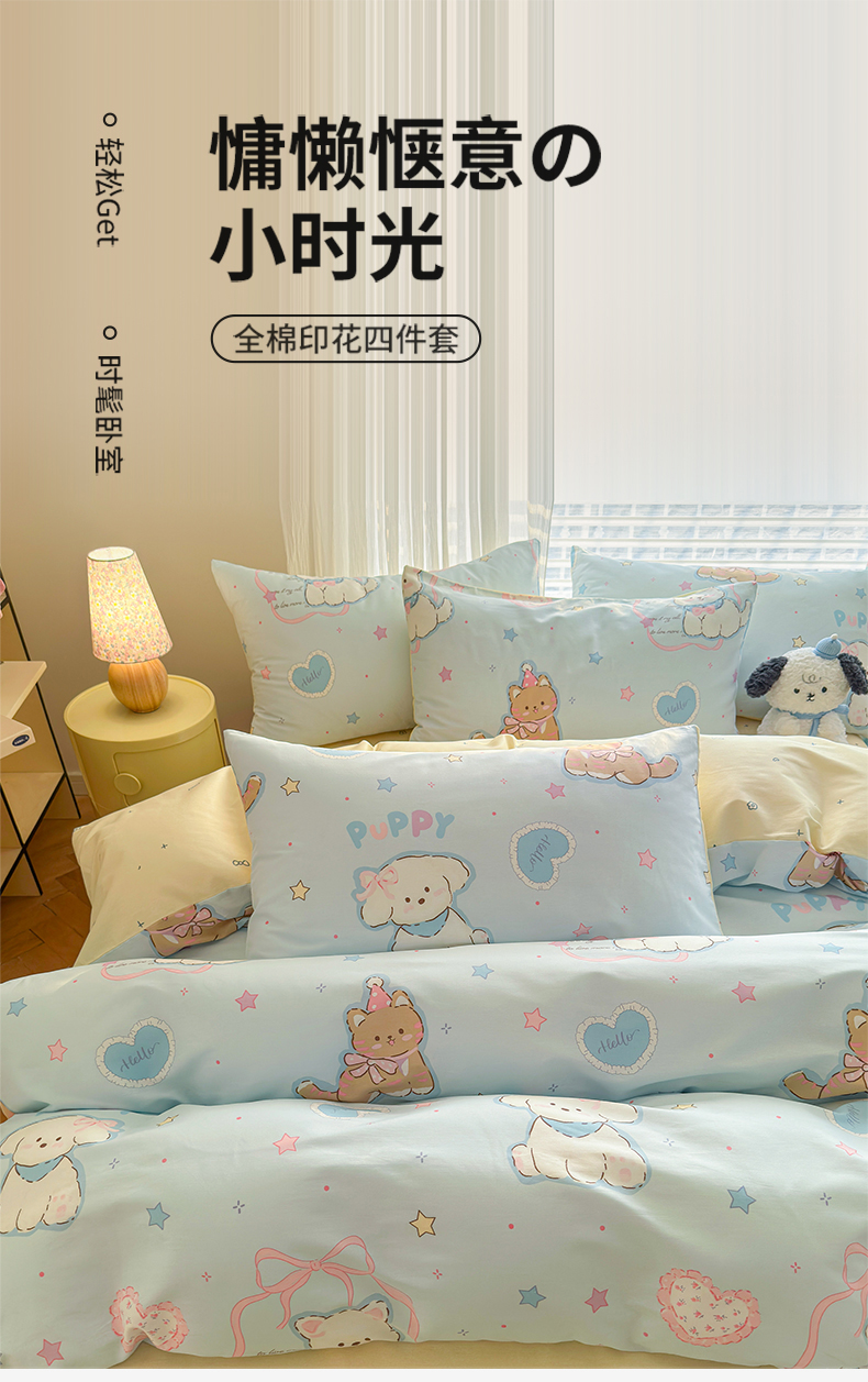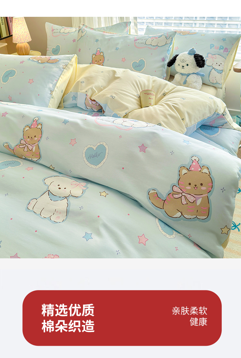 当前位置: 91家纺网 > 商品网购 > 床品套件 > 四件套 > 全棉普通四件套 > 名兮家居 2026跑量款全棉印花四件套 萌宠-蓝