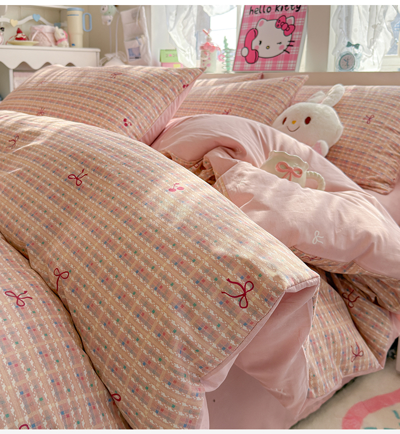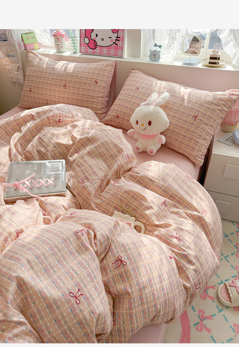 当前位置: 91家纺网 > 商品网购 > 床品套件 > 四件套 > 全棉普通四件套 > 名兮家居 2026跑量款全棉印花四件套 樱桃蝴蝶结