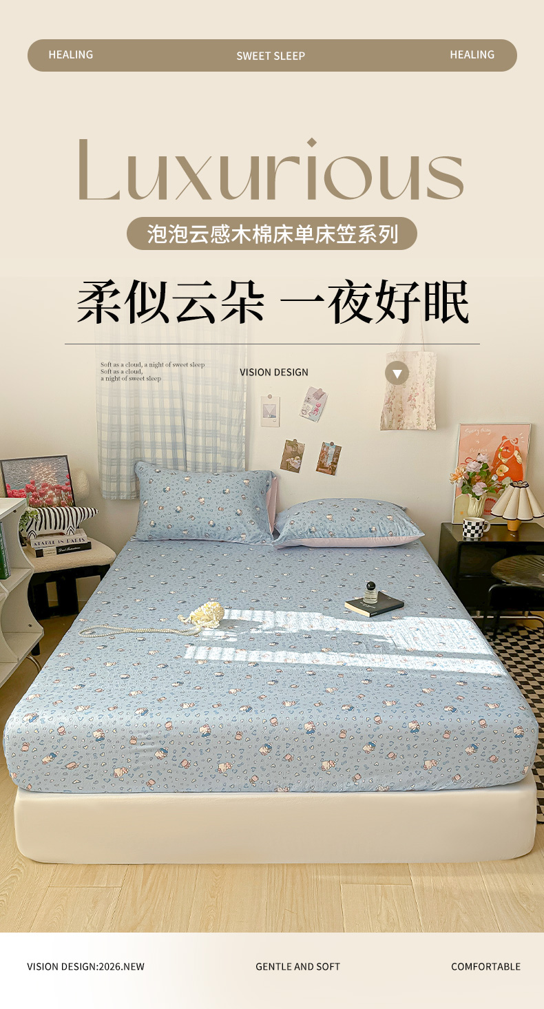(总)繁花家居 2026新款泡芙棉云感木棉邹邹纱单床笠床单单件学生床,彩虹萌宠,粉豹喵爪,粉光织梦,粉糖喵仔,复古拼格,果园晨曲,幻紫喵语,焦糖波点,焦糖格纹,蓝调奶猫,蓝光织梦,棱镜茶语,马卡甜铺,奶黄星芒,奶雾喵语,奶杏碎影,奶油花町,森系小熊,糖雾汪星,糖心粉喵,糖渍苹果,甜莓粉喵,甜梦萌兔,月白星喵,珠光爱心,组合图仅供展示不可下单