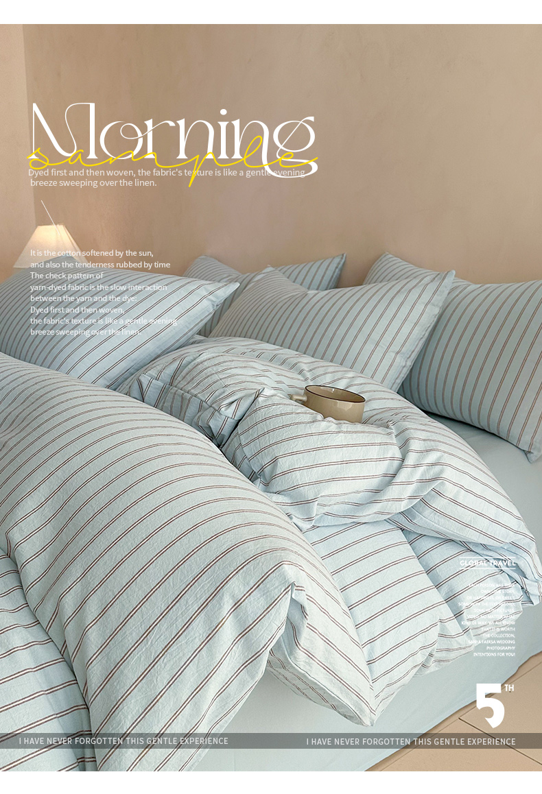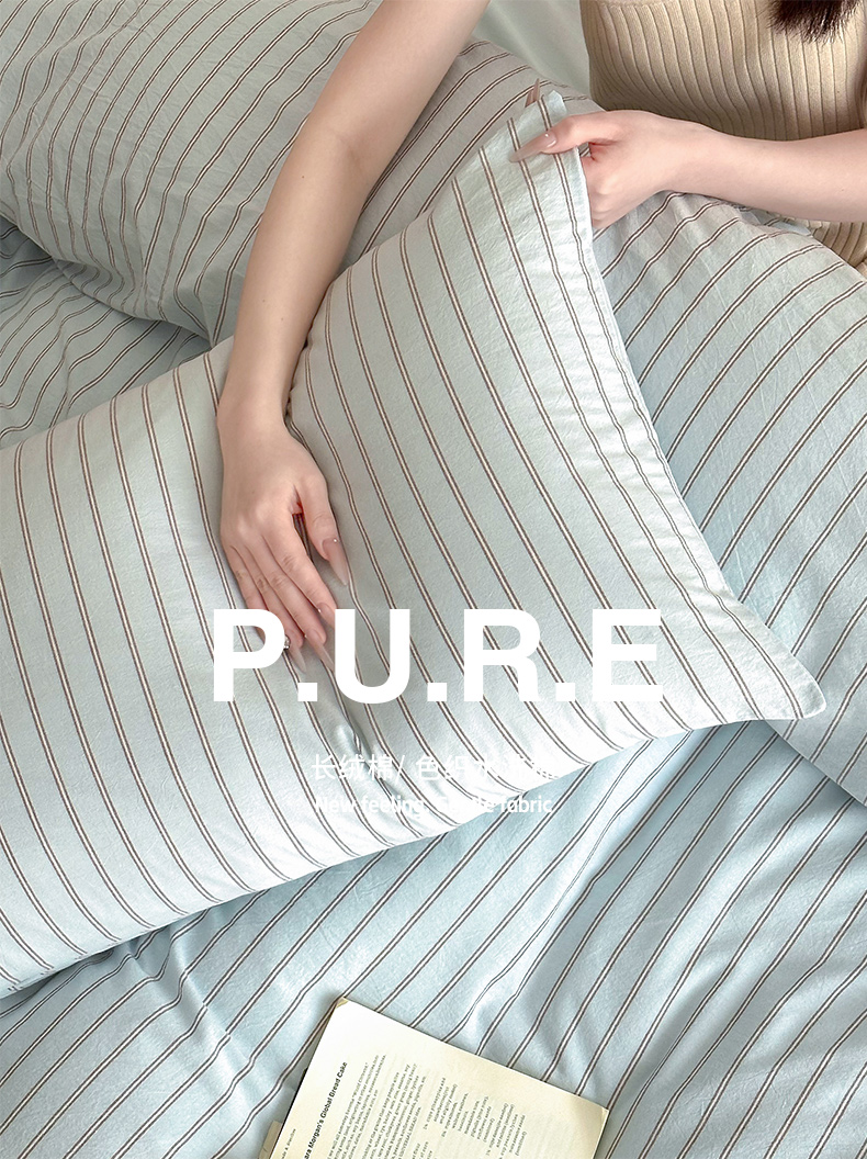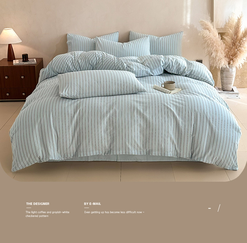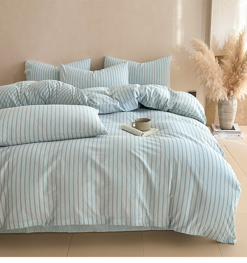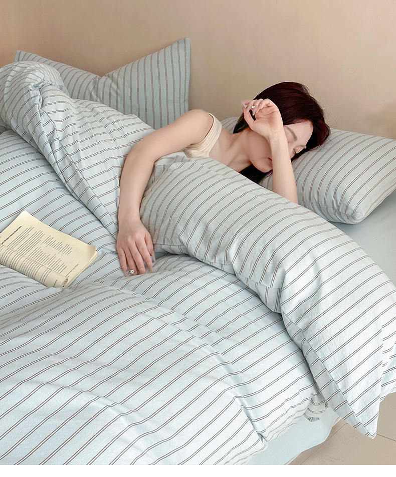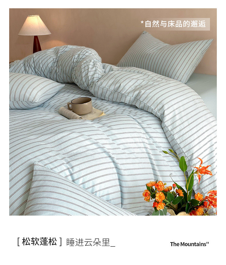 当前位置: 91家纺网 > 商品网购 > 床品套件 > 四件套 > 全棉普通四件套 > ab家纺 2026新款色织水洗棉全棉四件套 双条-蓝