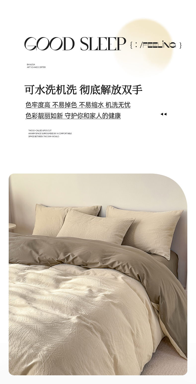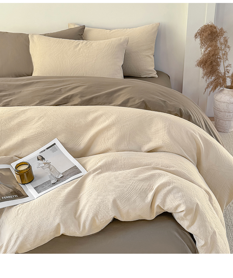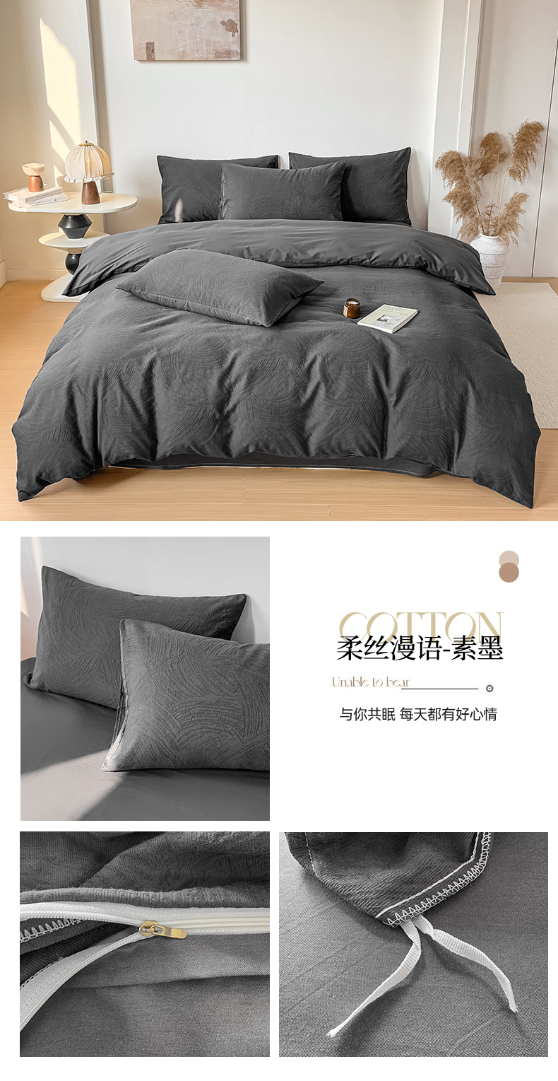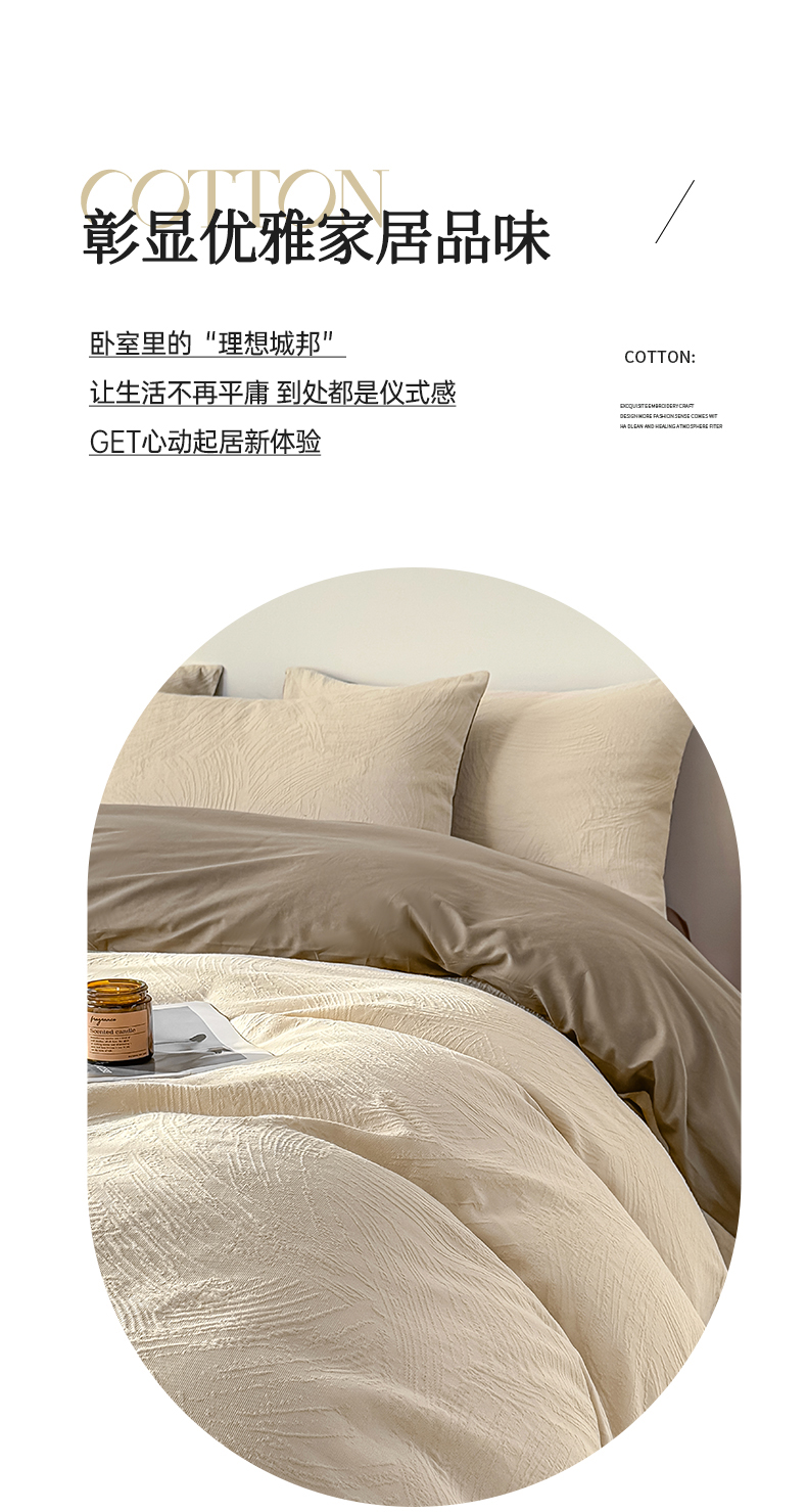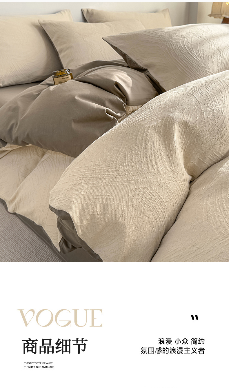 当前位置: 91家纺网 > 商品网购 > 床品套件 > 四件套 > 全棉普通四件套 > 灰鲸 2026新款全棉纯棉厚织三层水洗色织提花四件套 柔丝漫语-可可奶咖