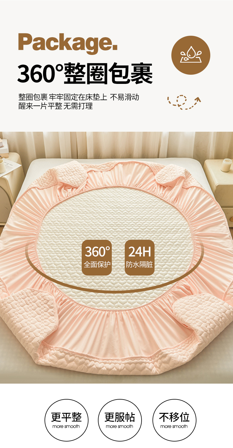 邵依家纺 2026新款原棉防水床笠系列 爱心奶黄