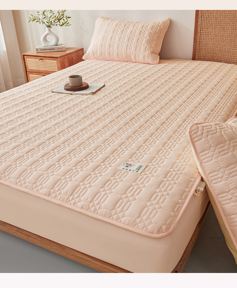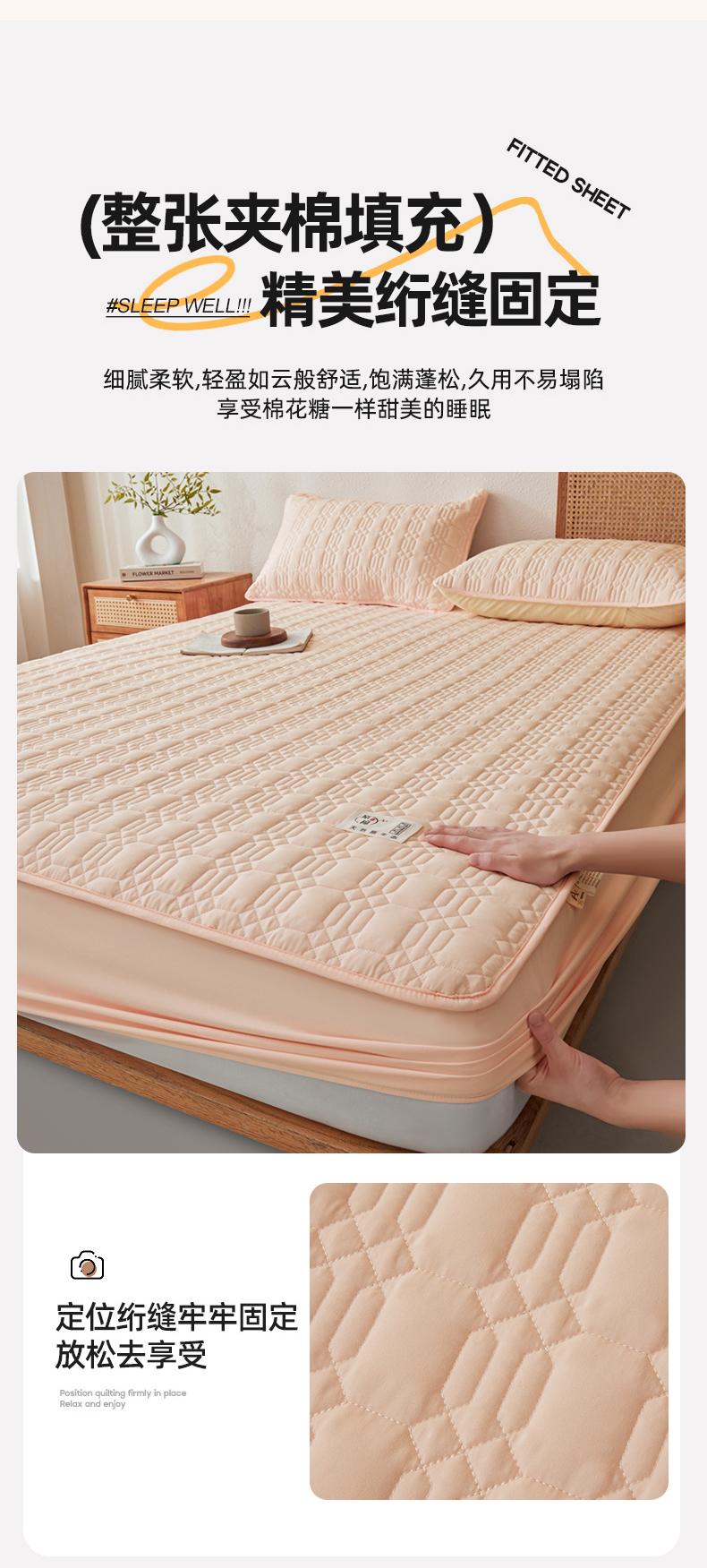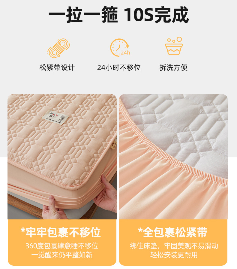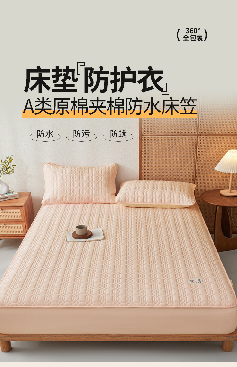 邵依家纺 2026新款原棉防水床笠系列 菱格奶黄