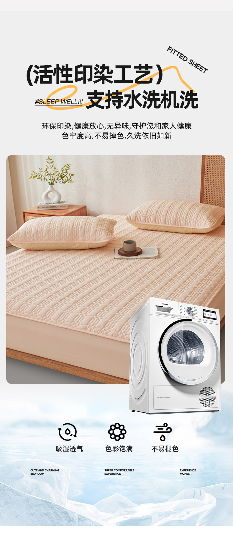 • 91家纺网 家纺一手货源 找家纺 邵依家纺 2026新款原棉防水床笠系列 菱格奶黄