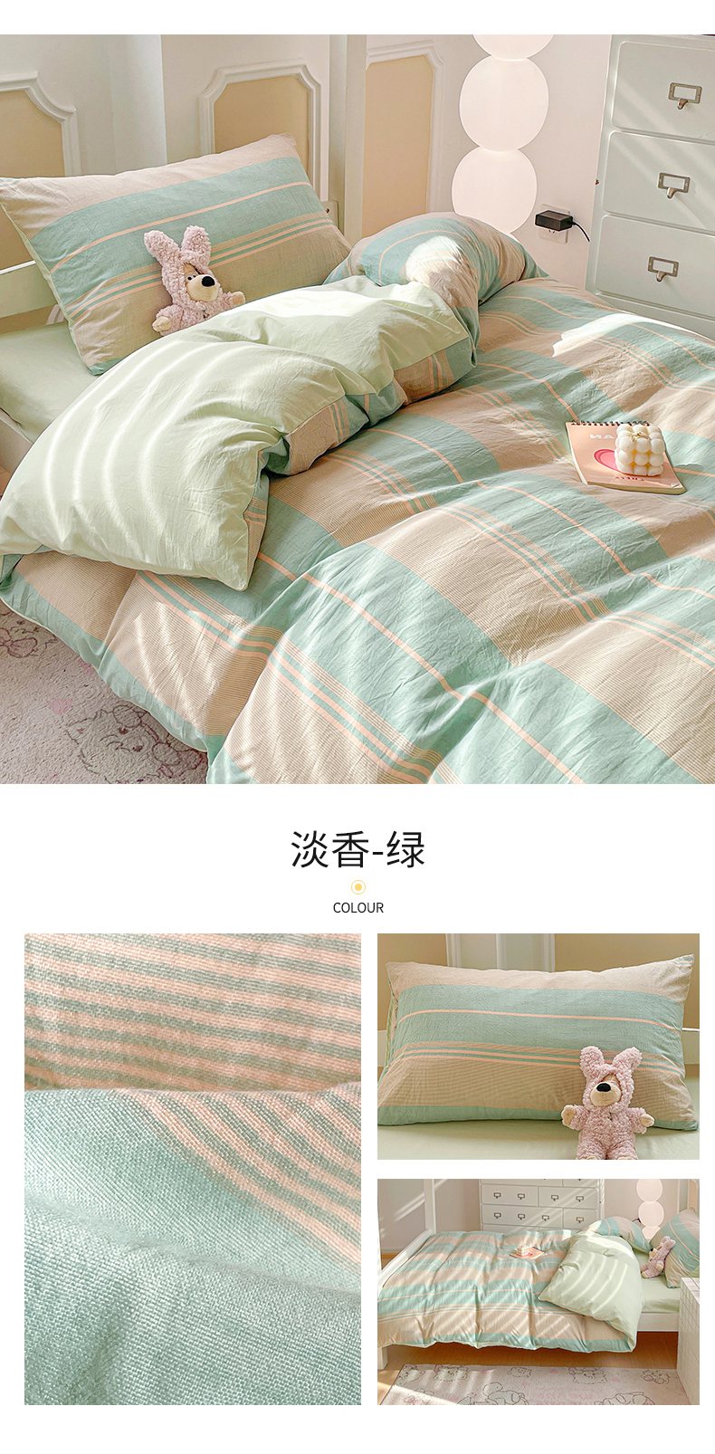 当前位置: 91家纺网 > 商品网购 > 床品套件 > 四件套 > 水洗棉四件套 > 纽缦家纺 2026新款水洗棉简约格子风学生床套件系列 淡香-兰