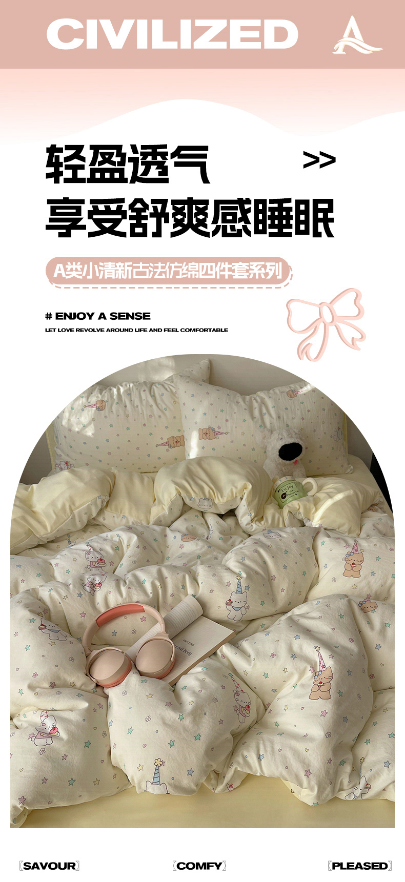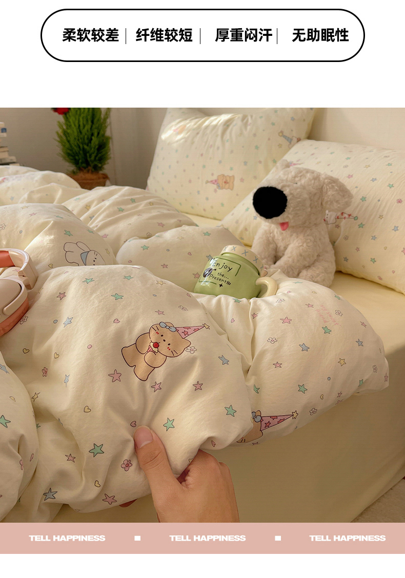 当前位置: 91家纺网 > 商品网购 > 床品套件 > 四件套 > 水洗棉四件套 > 初念 2026新款A类小清新古法简约水洗棉四件套 礼帽小猫