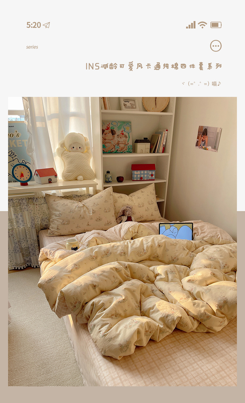 当前位置: 91家纺网 > 商品网购 > 床品套件 > 四件套 > 全棉普通四件套 > 耀悦家纺 2026新款40支a类全棉纯棉小清新卡通ins风博主风四件套 baby兔