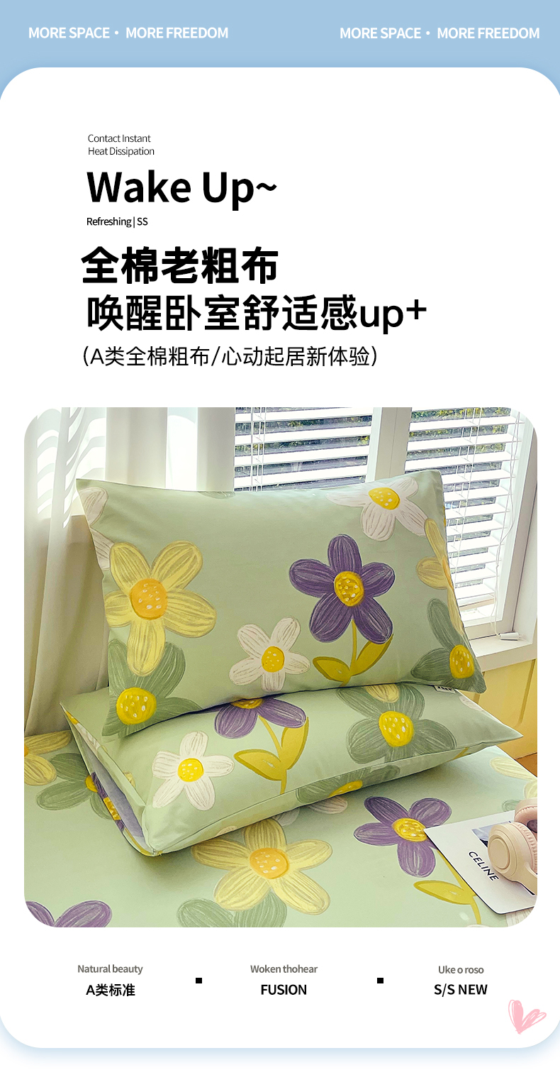 (总)金鑫汇家纺 2026新款全棉印花小清新单品床笠系列-可露丽,海盐可露丽,浅咖可露丽,浅绿可露丽,月下花影-桔,月下花影-蓝,月下花影-绿