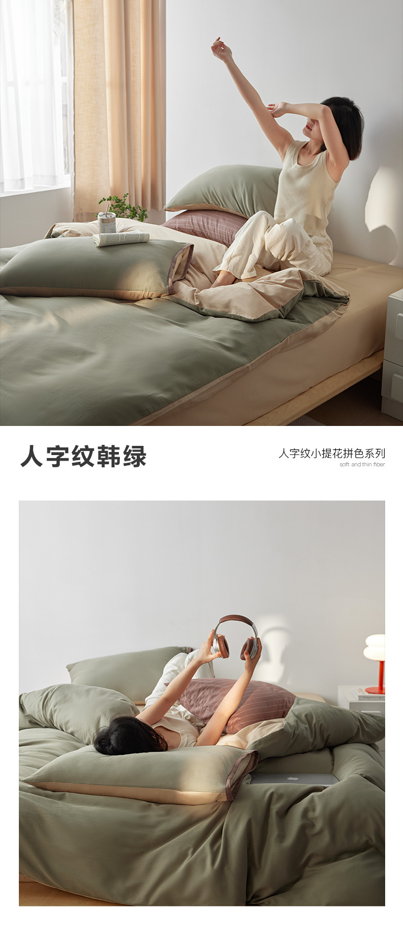 (总)佳汐蓝家纺 2026新款春夏人字纹小提花拼色系列四件套,人字纹山茶粉,人字纹藏青,人字纹韩绿,人字纹浅咖,人字纹浅蓝,人字纹炭灰