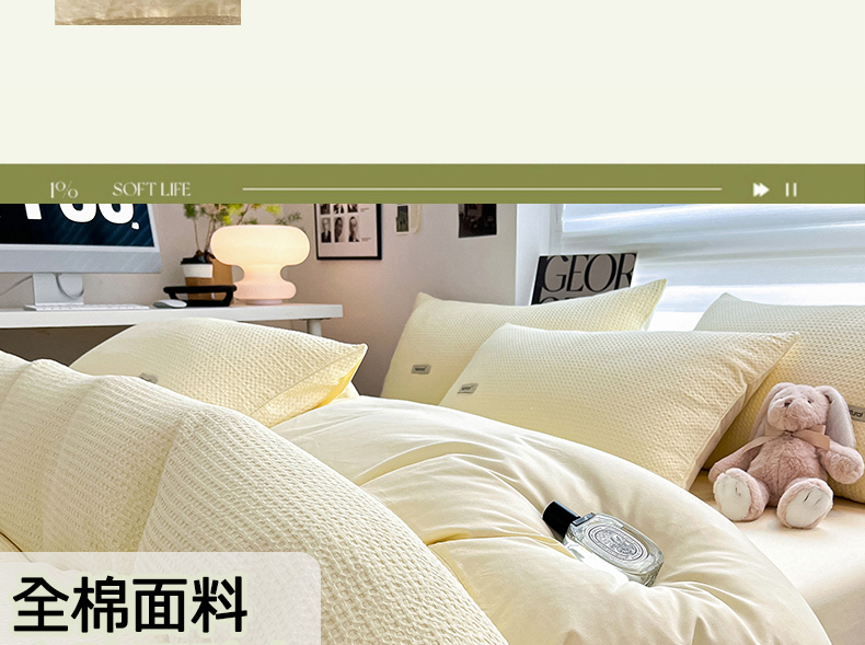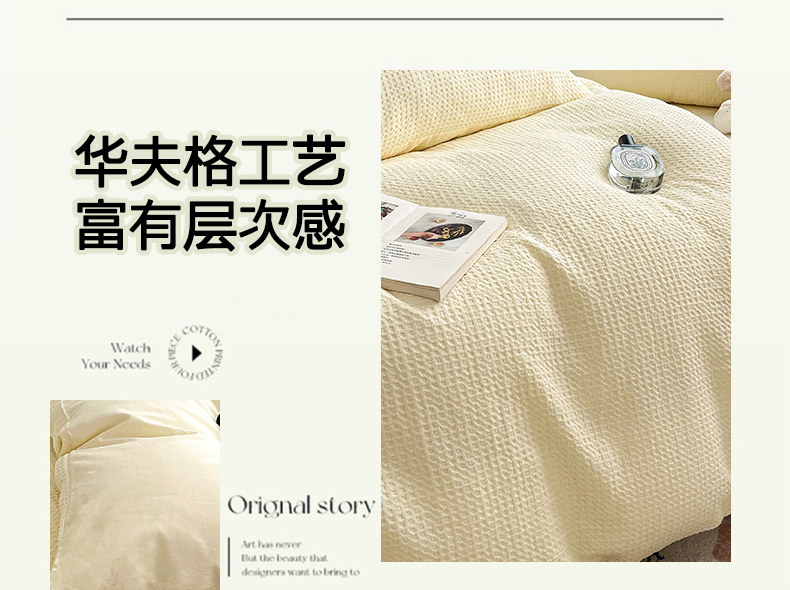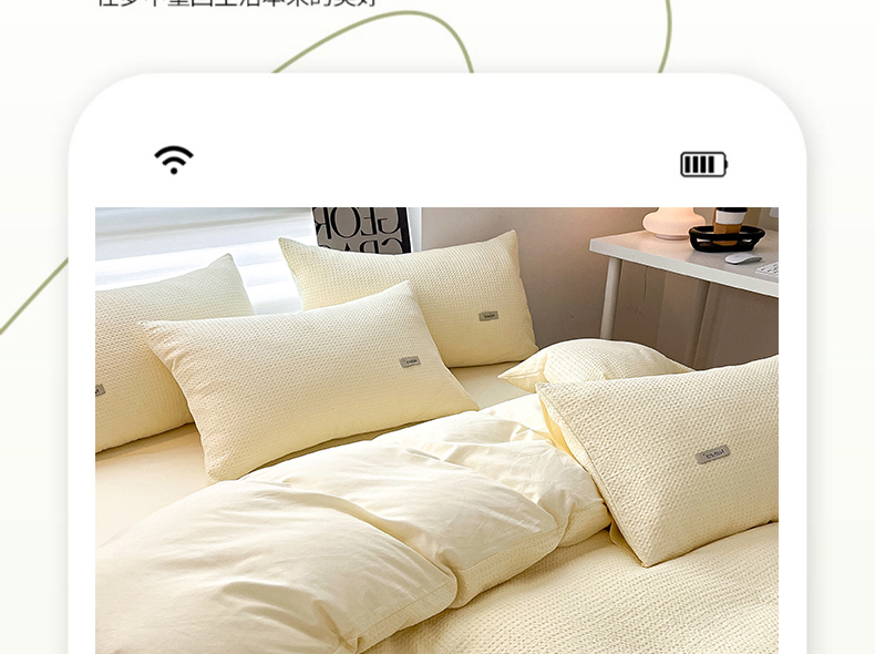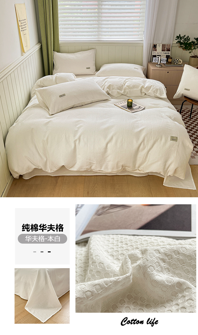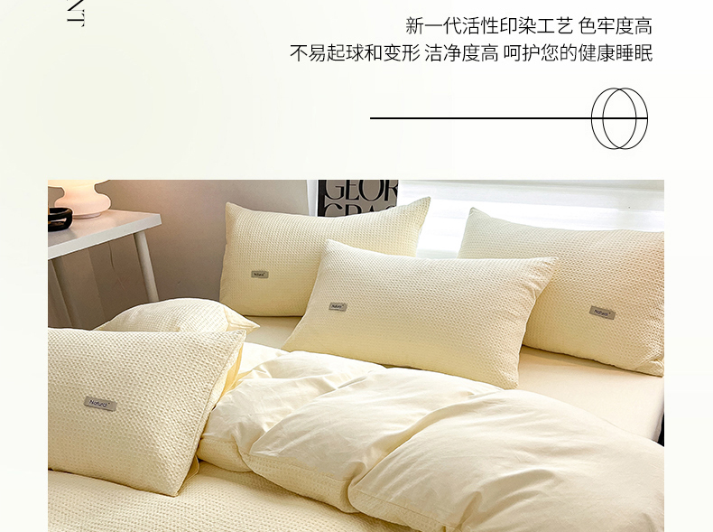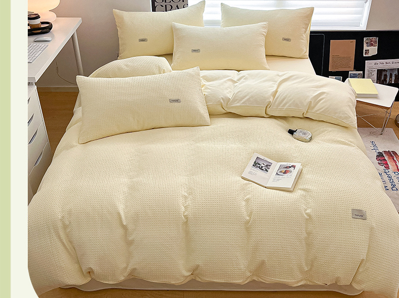 当前位置: 91家纺网 > 商品网购 > 床品套件 > 四件套 > 全棉普通四件套 > 琪格格纺织 2026新款纯棉纯棉色织肌理纹提花华夫格纯棉轻奢简约款四件套 华夫格-奶昔黄