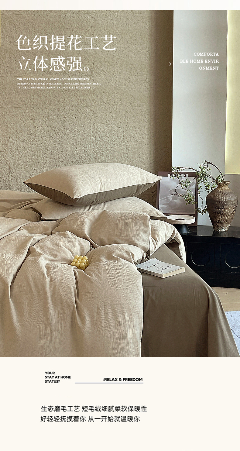 当前位置: 91家纺网 > 商品网购 > 床品套件 > 四件套 > 全棉普通四件套 > 琪格格纺织 2026新款纯棉纯棉色织肌理纹提花华夫格纯棉轻奢简约款四件套 星岛-可可棕