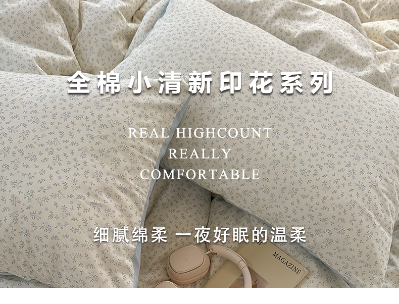 当前位置: 91家纺网 > 商品网购 > 床品套件 > 四件套 > 全棉普通四件套 > XIWEN-希文家纺 2026春夏新款40支全棉纯棉13372小清新印花四件套 娇兰