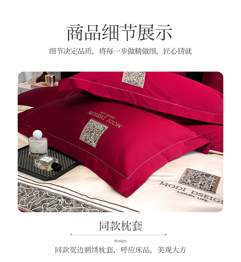 商品名称:优眠坊 2026春夏新款高档礼盒装5050S贡缎长绒棉刺绣四件套100%纯棉全棉轻奢床品-星空 星空-红