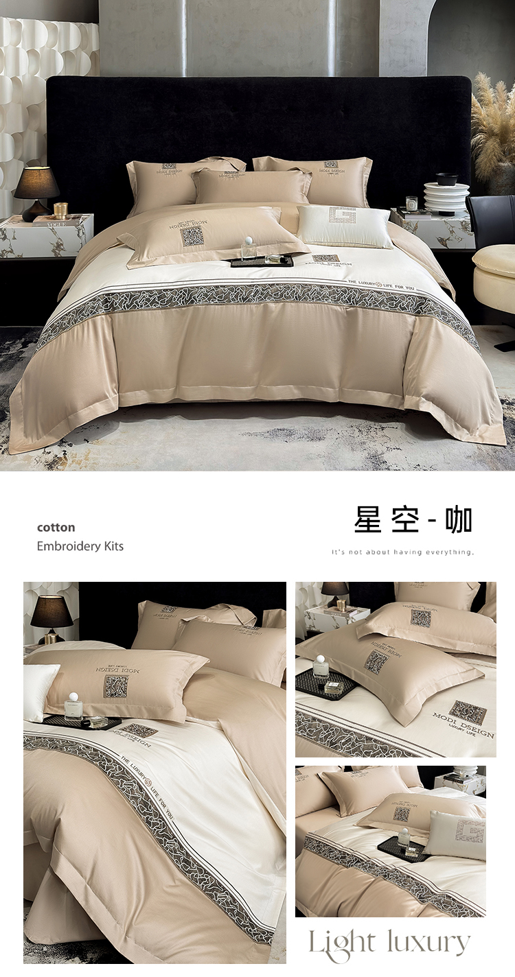 (总)优眠坊 2026春夏新款高档礼盒装5050S贡缎长绒棉刺绣四件套100%纯棉全棉轻奢床品-星空,星空-红,星空-咖