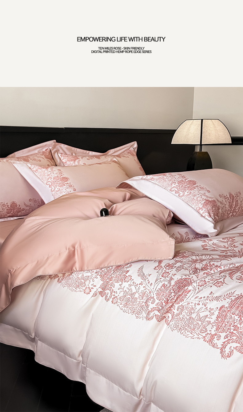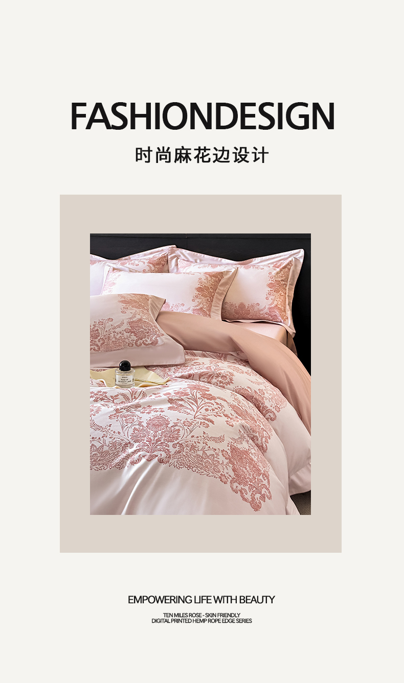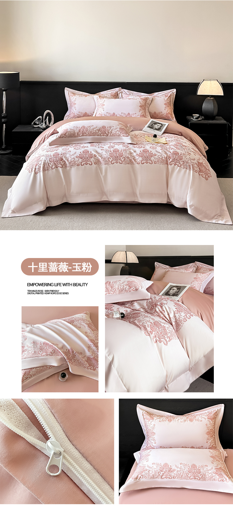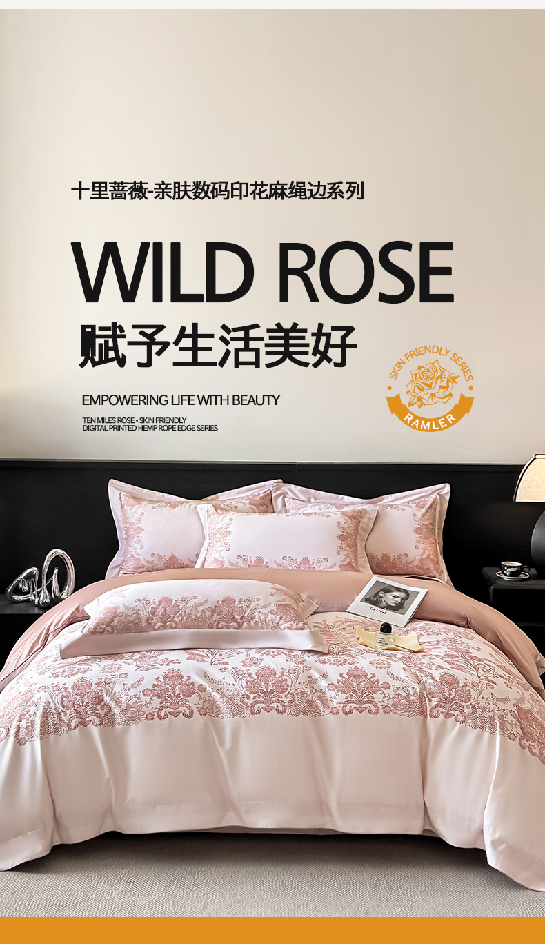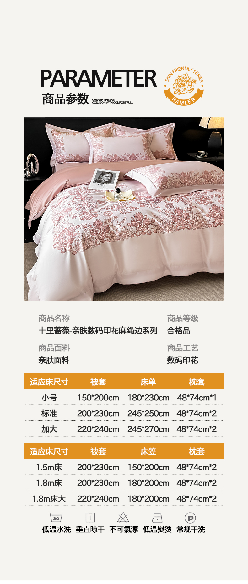 当前位置: 91家纺网 > 商品网购 > 床品套件 > 四件套 > 其它四件套 > 置顶家纺 2026新款十里蔷薇-亲肤数码印花麻绳边系列 十里蔷薇-玉粉