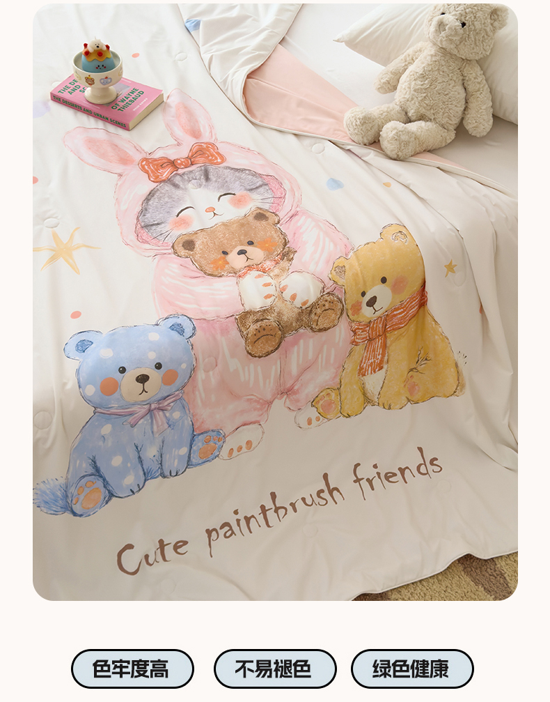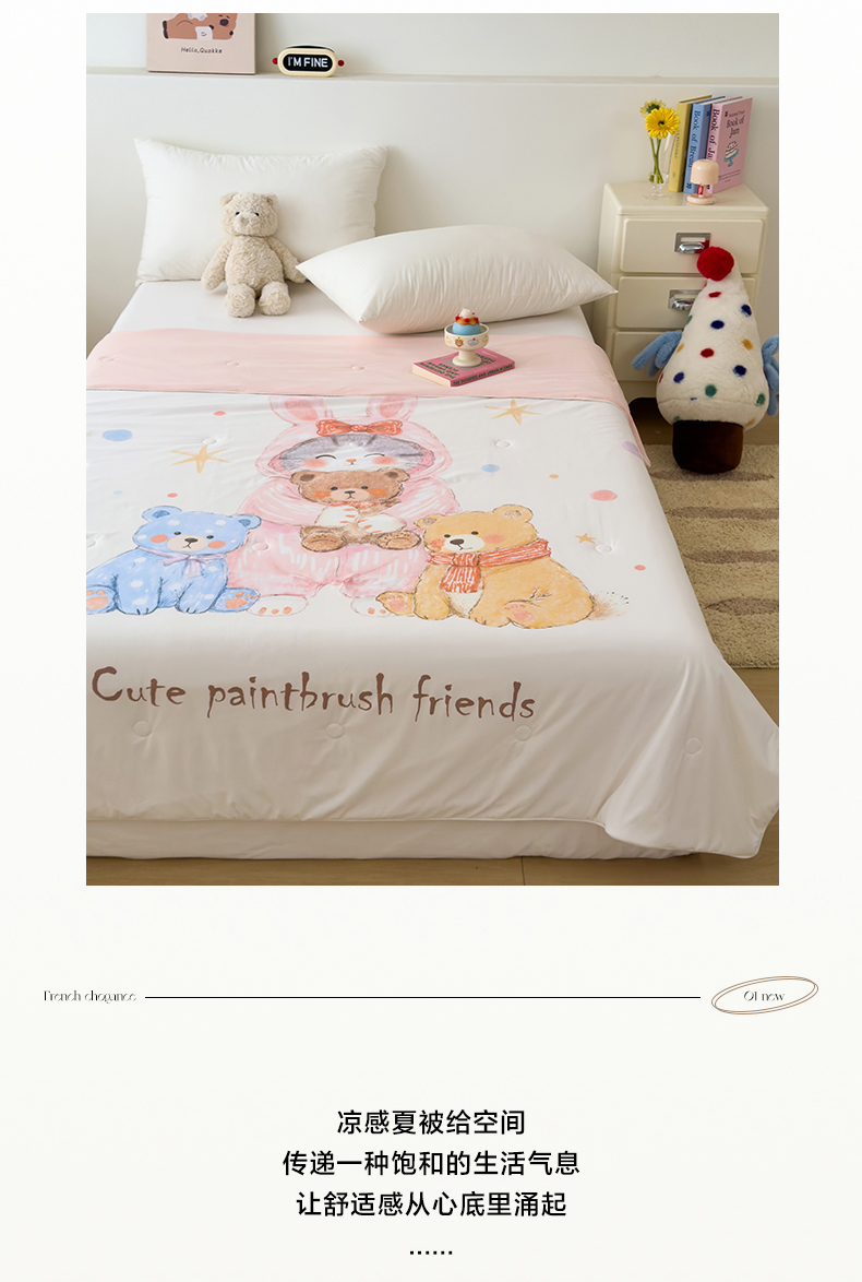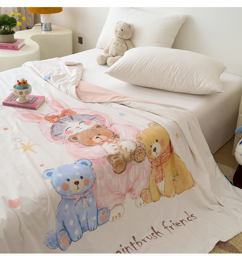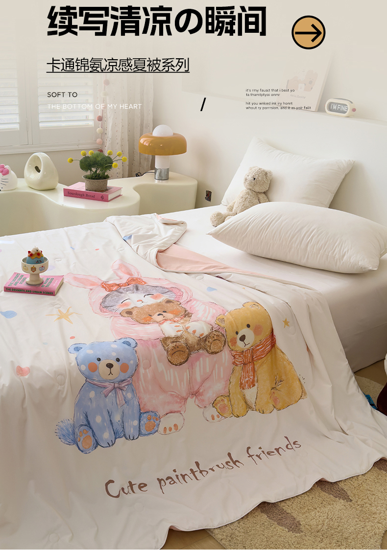 • 91家纺网 家纺一手货源 找家纺 岚司羽 2026新款卡通锦氨凉感夏被系列 涂鸦小熊