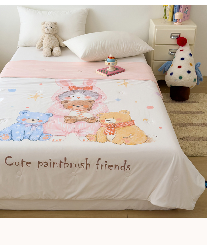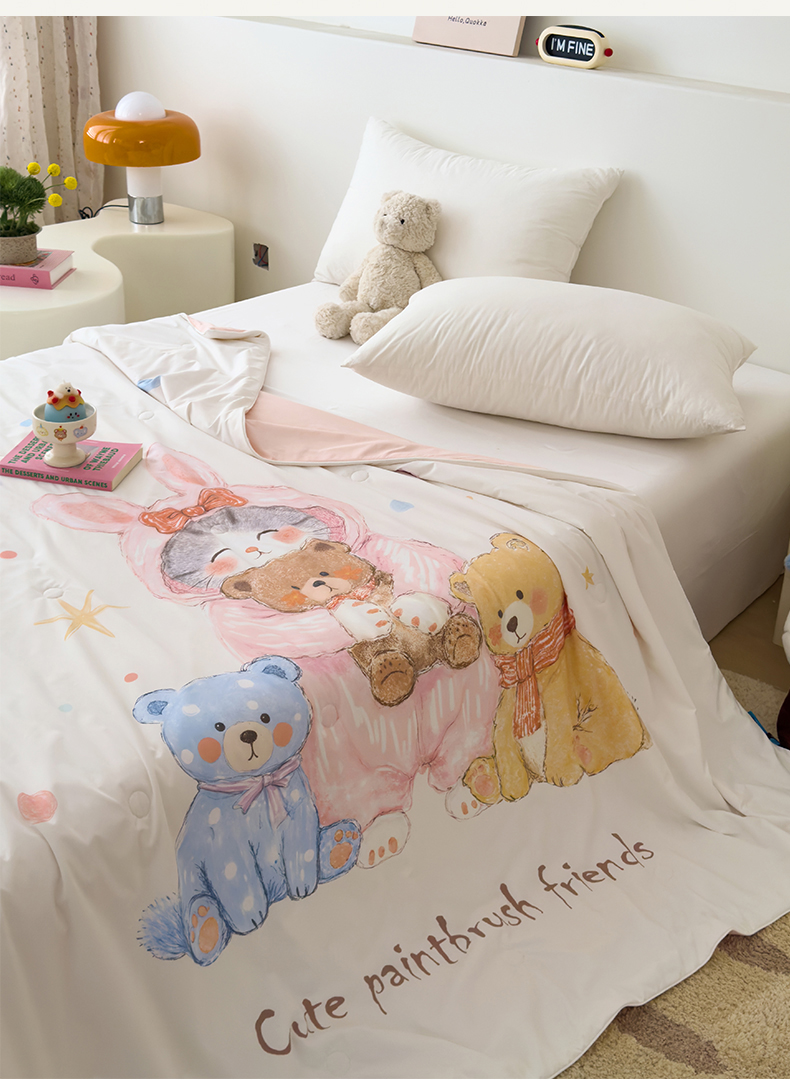 岚司羽 2026新款卡通锦氨凉感夏被系列 涂鸦小熊