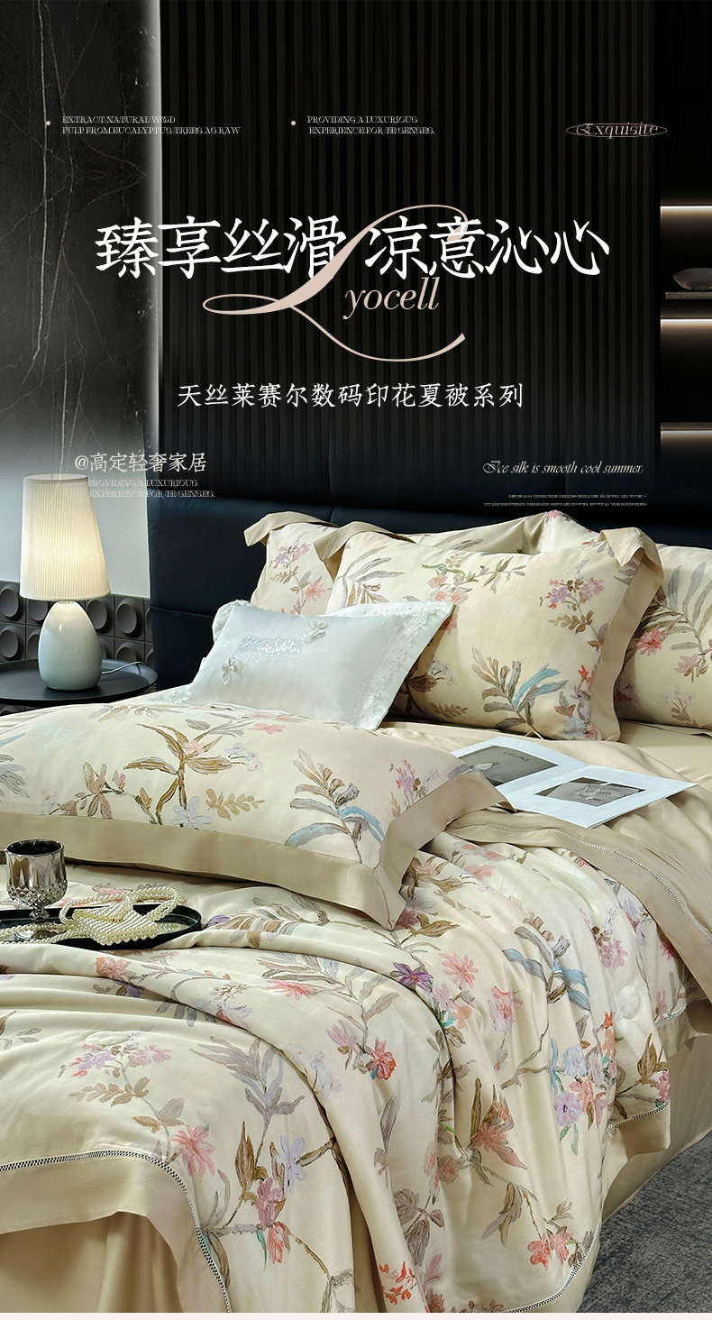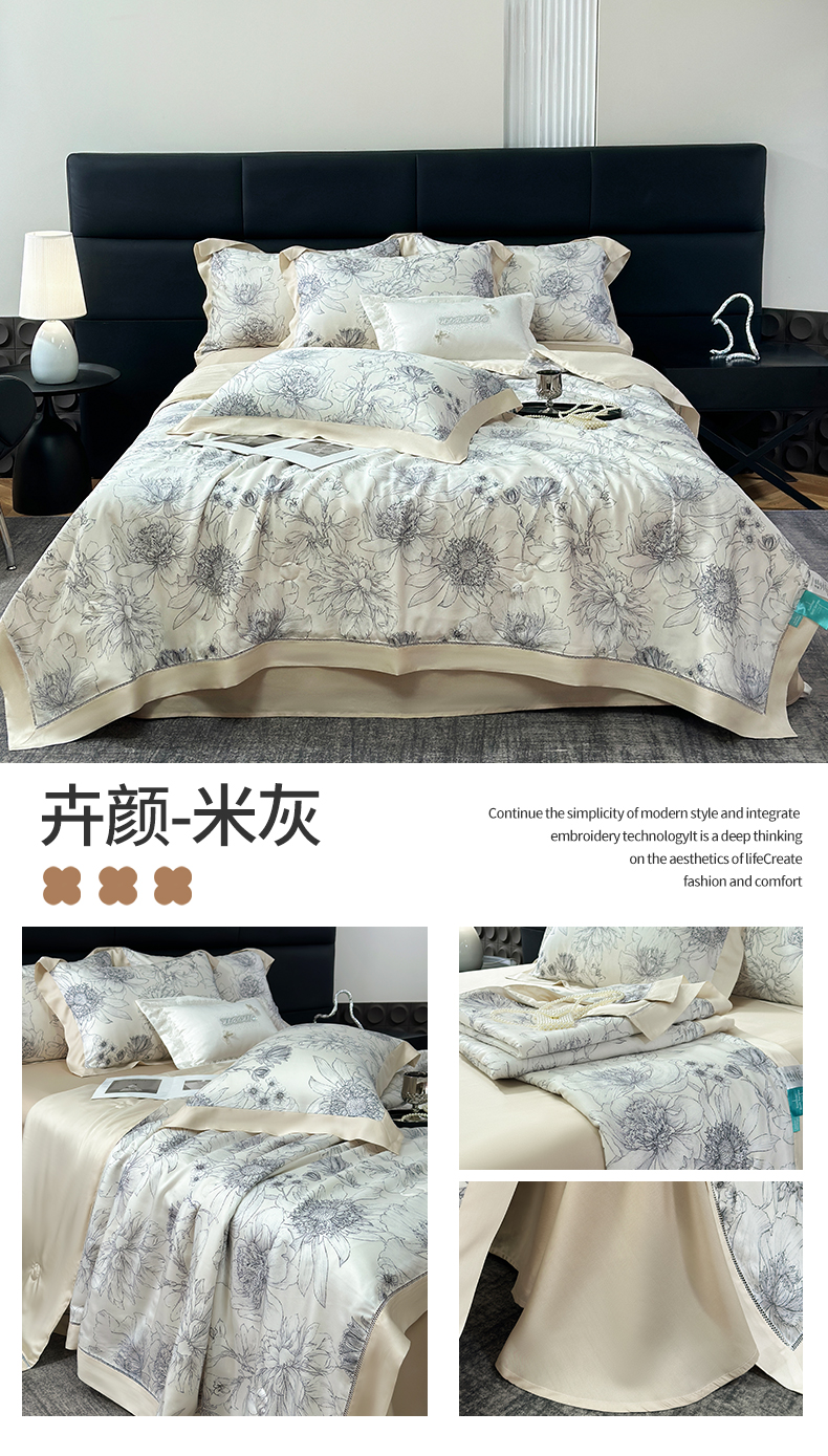 • 91家纺网 家纺一手货源 找家纺 岚司羽 2026春夏新款50天丝夏被四件套夏凉被空调被系列 俏枝