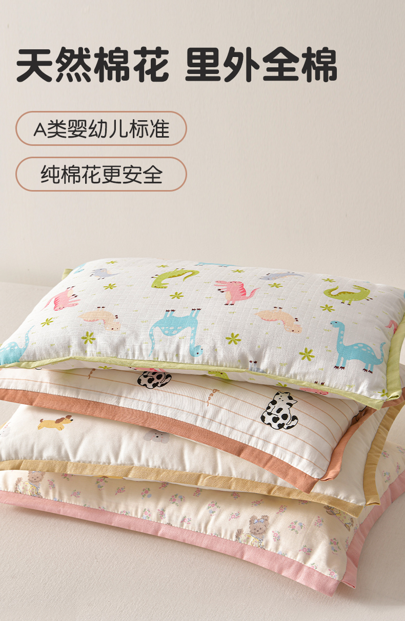(总)小桃姐家纺 2026新款纯棉+豆豆绒棉花枕 枕头枕芯 儿童枕 学生枕,星星萌娃,花丛猛兽,简笔小汪,星星小象蓝