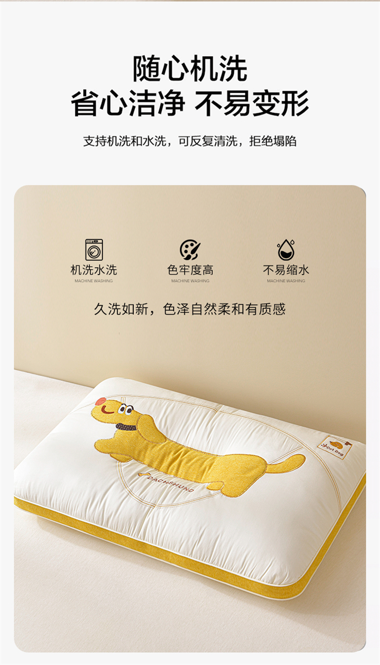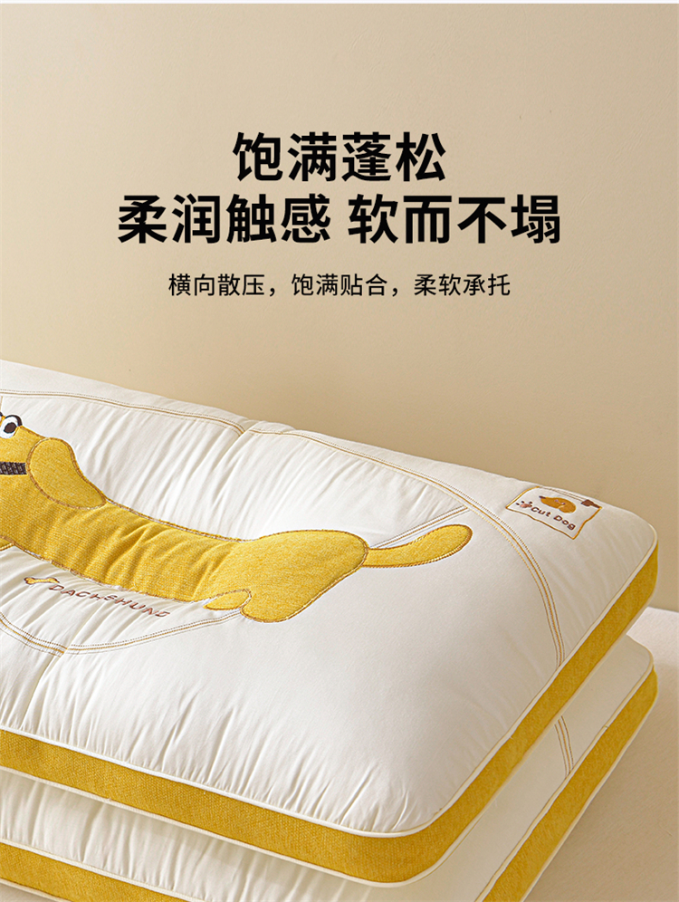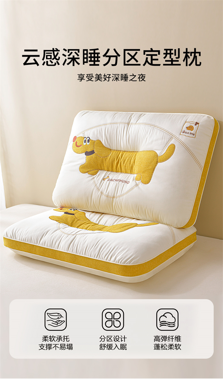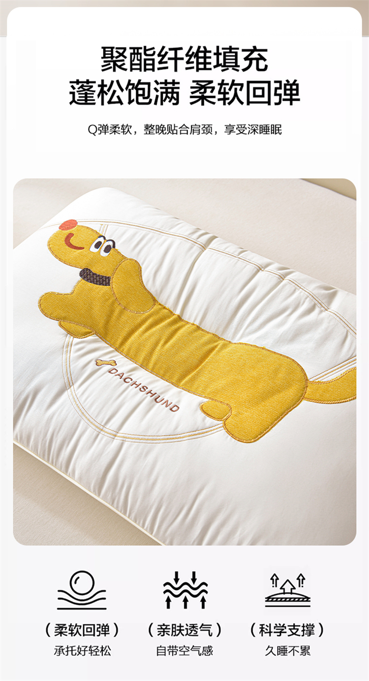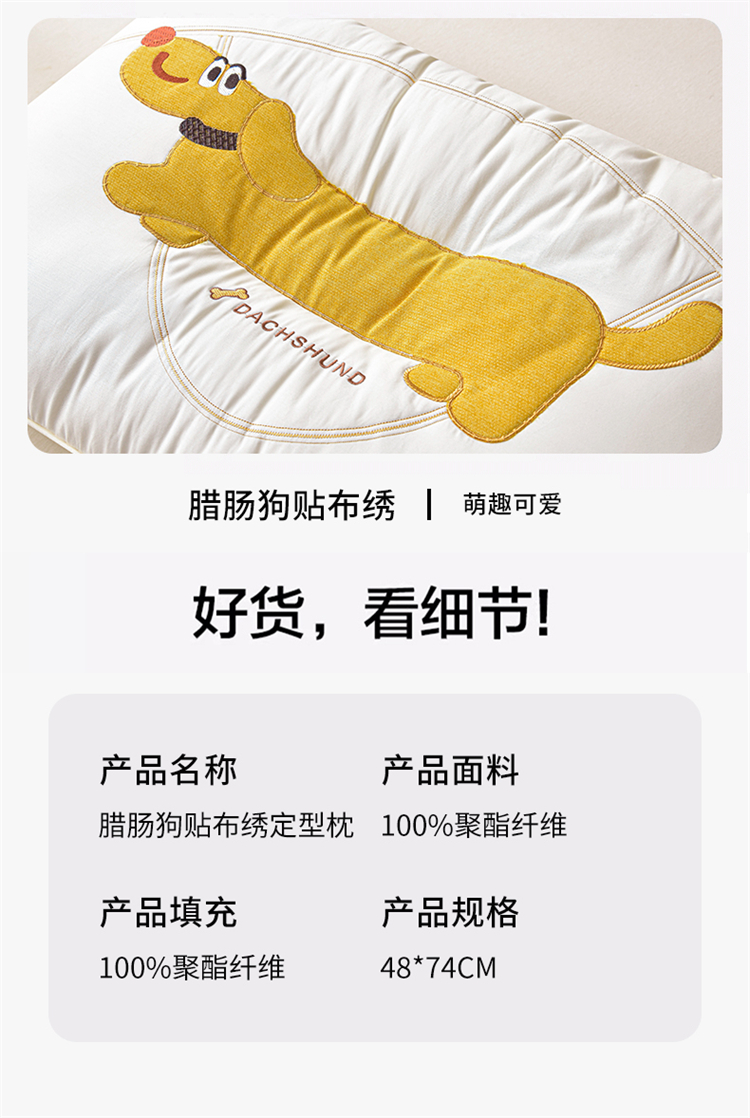 商品名称:(总)小桃姐家纺 2025新款贴布绣腊肠狗定型枕卡通儿童枕学生枕芯可爱颈椎枕枕芯