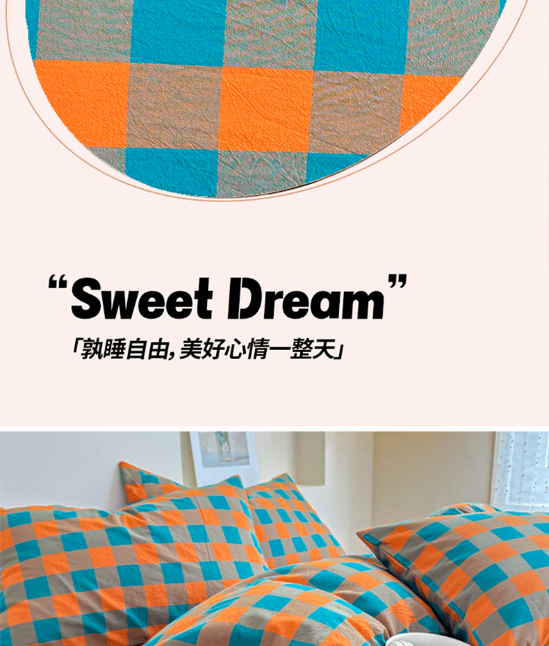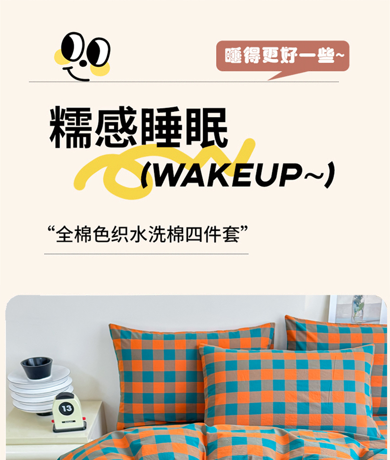 (总)佑佳家纺 2026新款全棉色织水洗棉四件套,橙蓝格,嘟嘟柚红,灰色空间,简兮-蓝,蓝小格,洛林-灰,绿大格,马里奥-粉,米小格,莫尼-灰,牛油果-绿,羽梦-粉,组合图仅供展示-不可下单