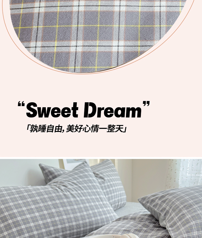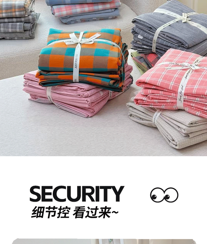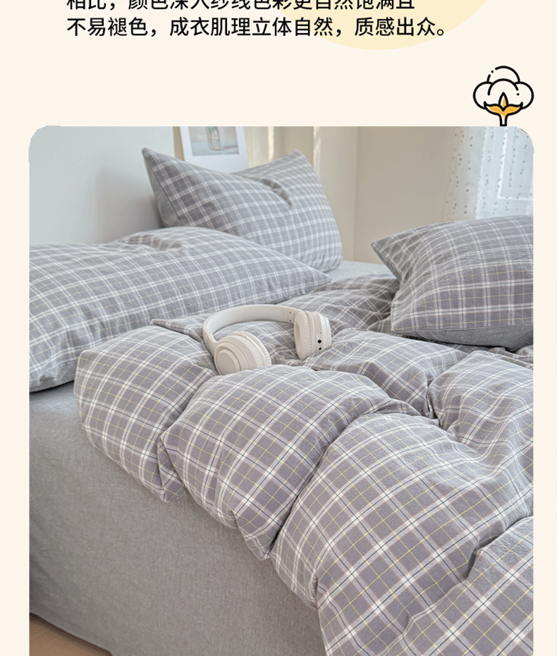 (总)佑佳家纺 2026新款全棉色织水洗棉四件套,橙蓝格,嘟嘟柚红,灰色空间,简兮-蓝,蓝小格,洛林-灰,绿大格,马里奥-粉,米小格,莫尼-灰,牛油果-绿,羽梦-粉,组合图仅供展示-不可下单