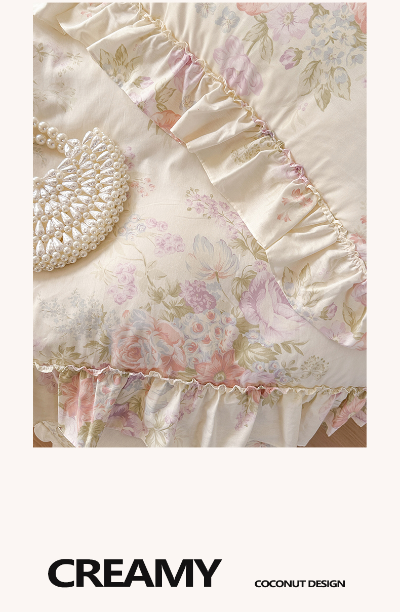 瑞宝 2026新款春款全棉印花床裙四件套【控价265起 各平台严格控价:所有尺寸在扣除店铺优惠券后利润不得少于70(包含活动期)】 花时