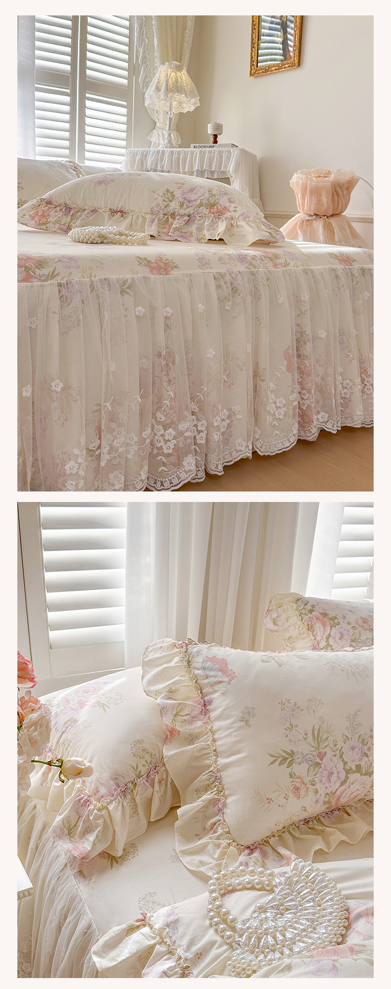 (总)瑞宝 2025新款全棉花边床裙三件套系列-落日甜茶,落日甜茶-梦幻玉,落日甜茶-奶油白,落日甜茶-青柠绿,落日甜茶-甜紫