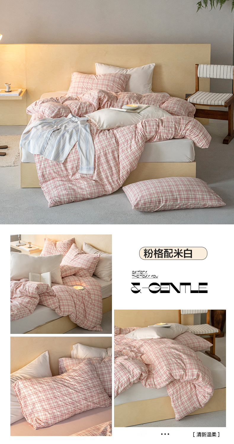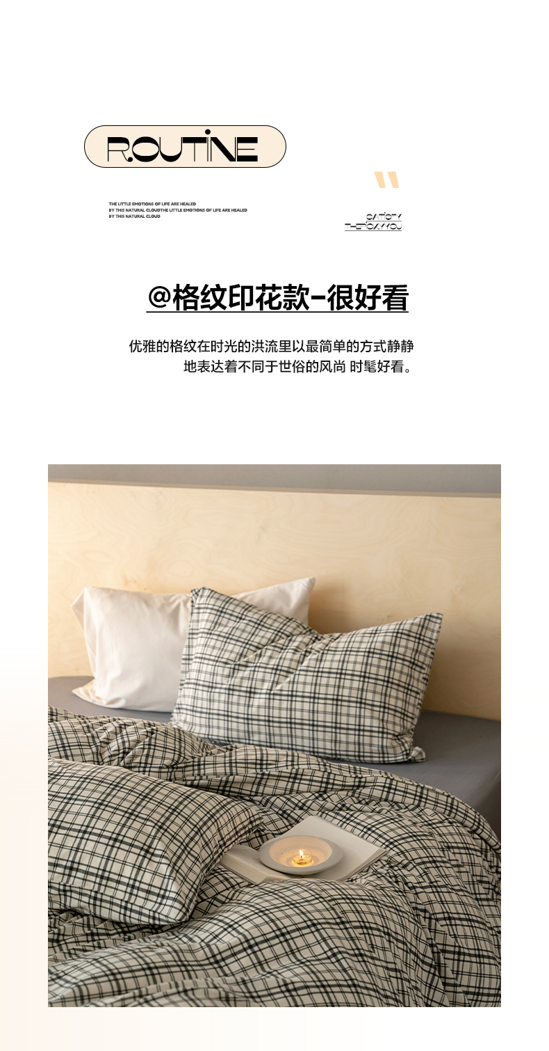 (总)华超针织 2026新款全棉天竺棉针织格子印花四件套