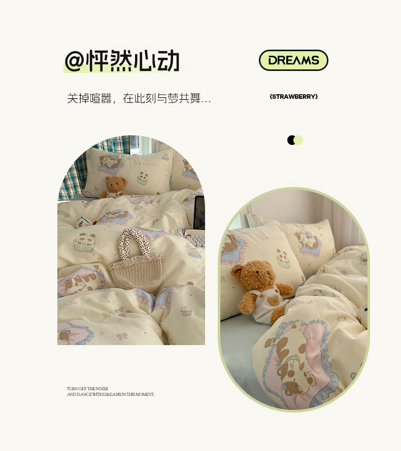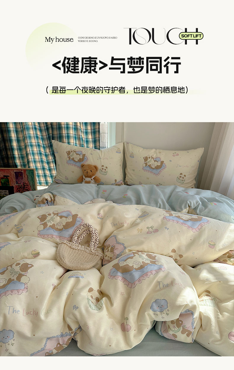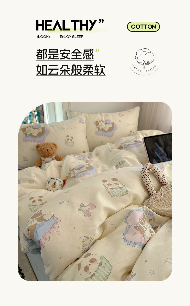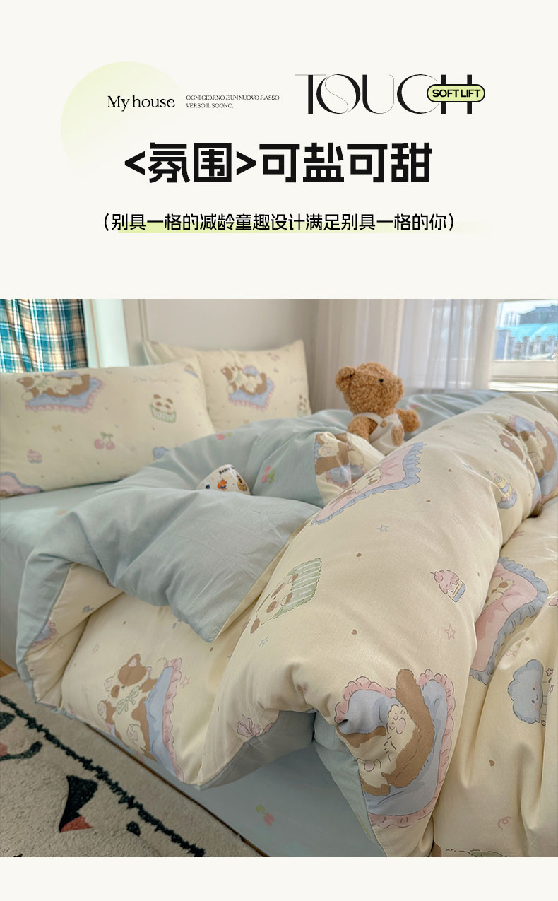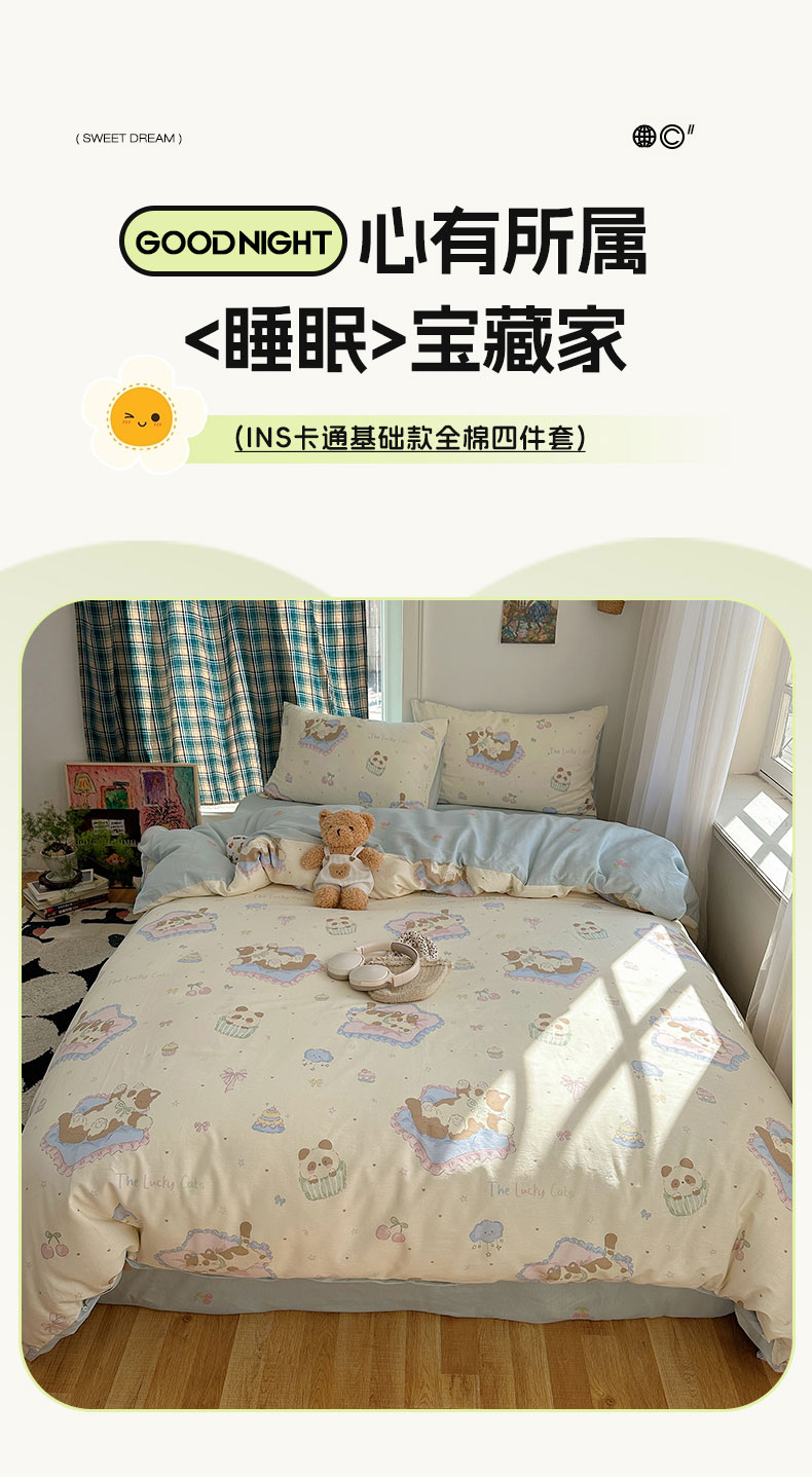 (总)六巷胡同 2025新款INS卡通童趣混搭风全棉四件套第二系,混搭-蛋糕围兜熊,混搭-奶油酣睡熊,混搭-奈斯羞羞狗,混搭-小蓝格甜点,混搭-雪糕哈皮熊,混搭-月亮睡睡熊