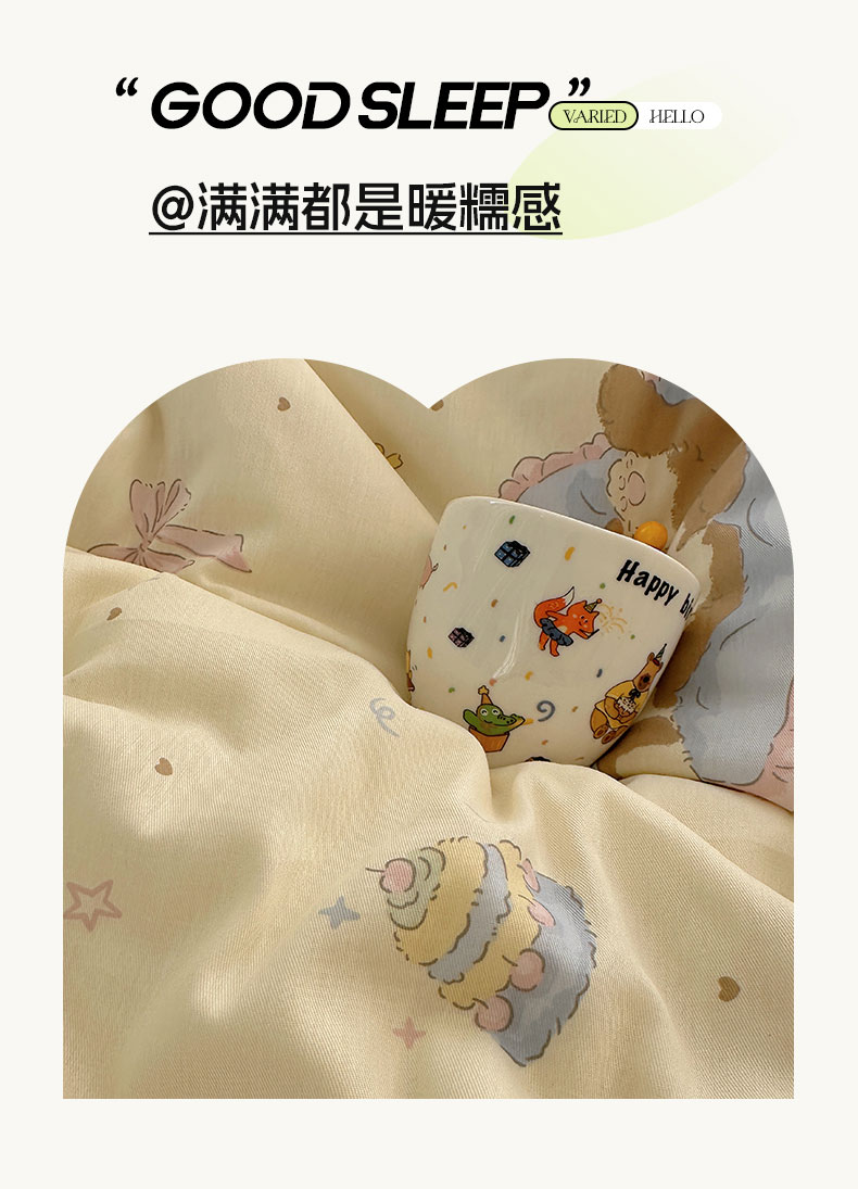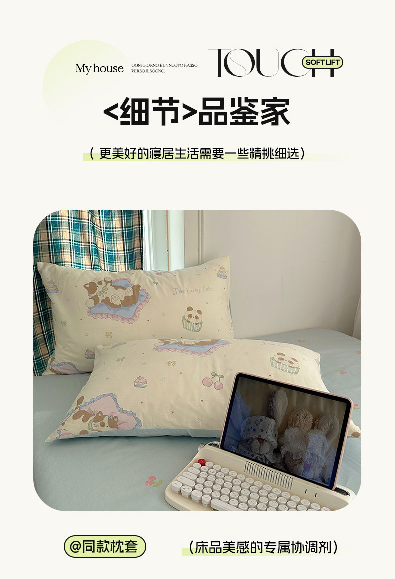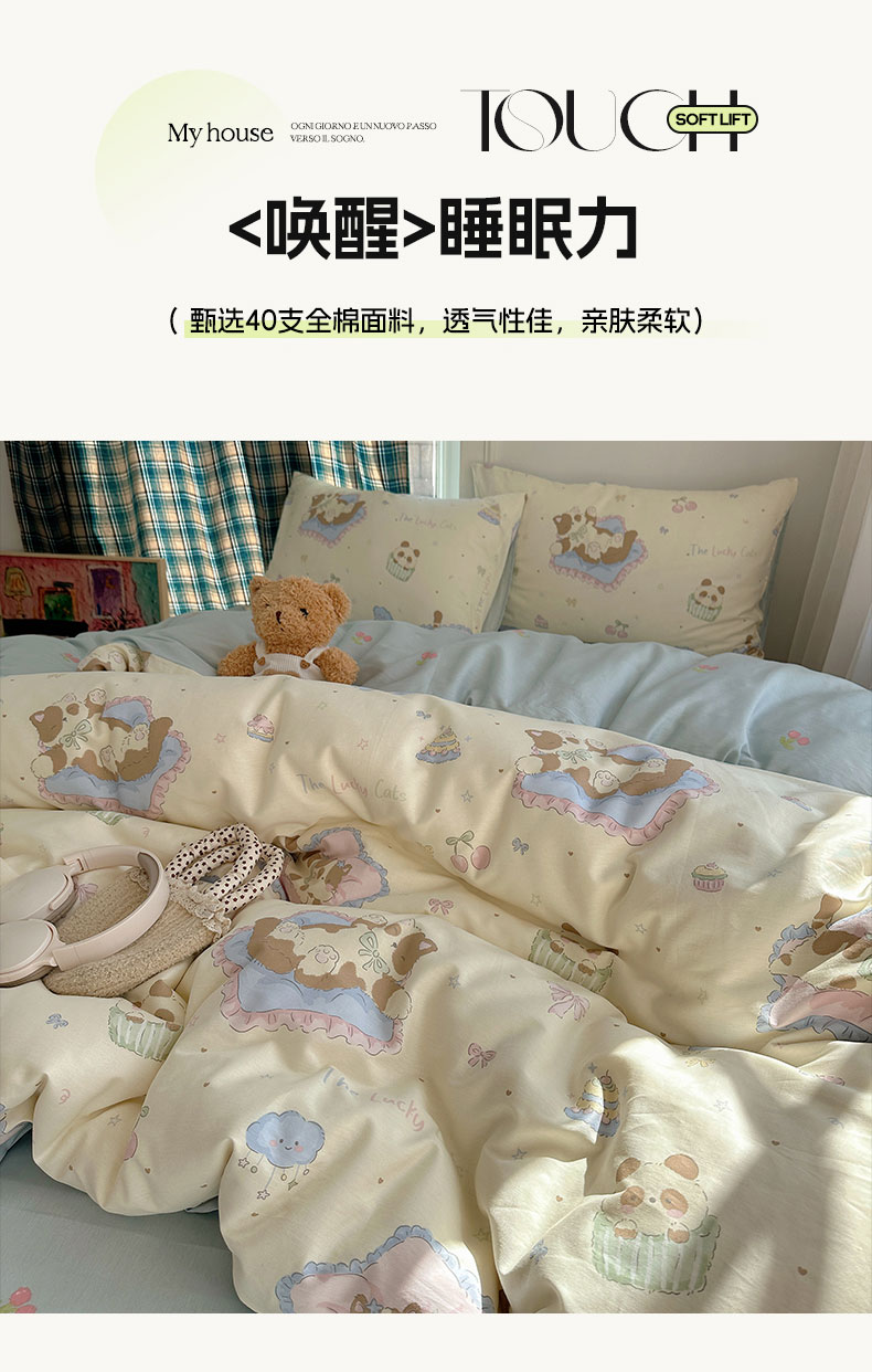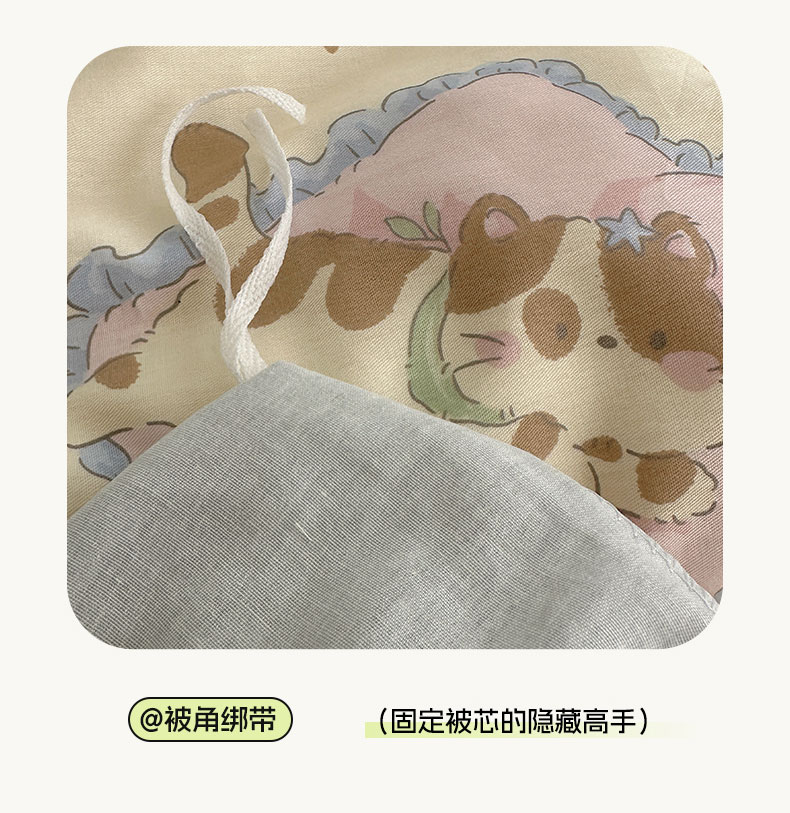 商品名称:六巷胡同 2026新款INS减龄可爱风卡通40支13070全棉四件套(第三系列) 慵懒猫咪崽
