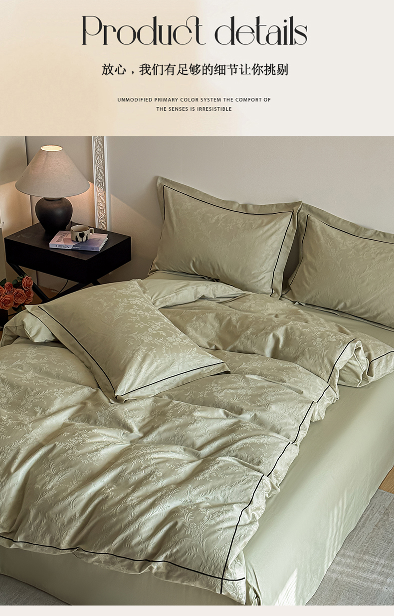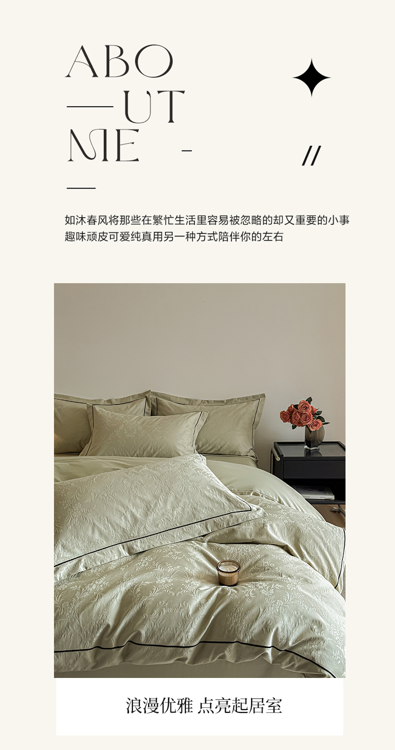 商品名称:首尔家纺 2026新款浮雕提花色织全棉四件套 云枝-绿