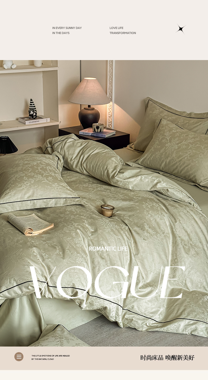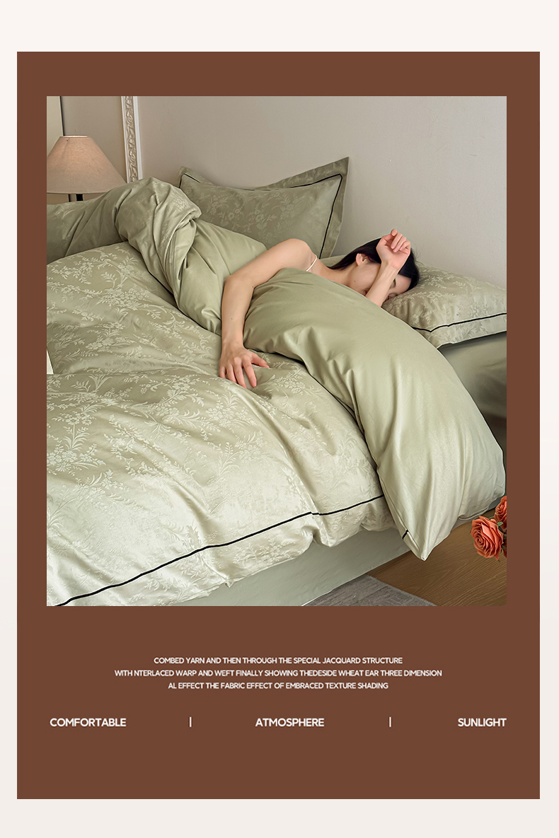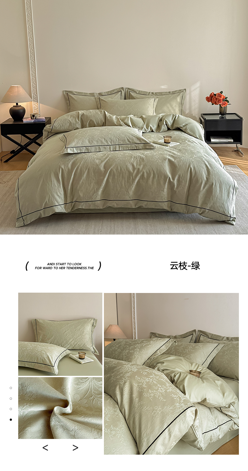 首尔家纺 2026新款浮雕提花色织全棉四件套 云枝-绿