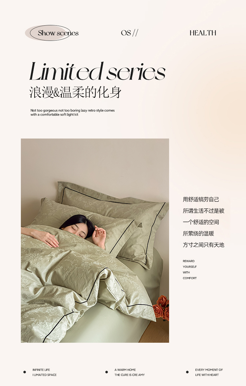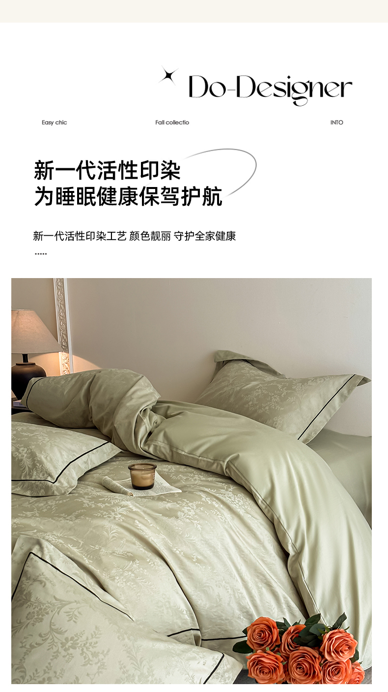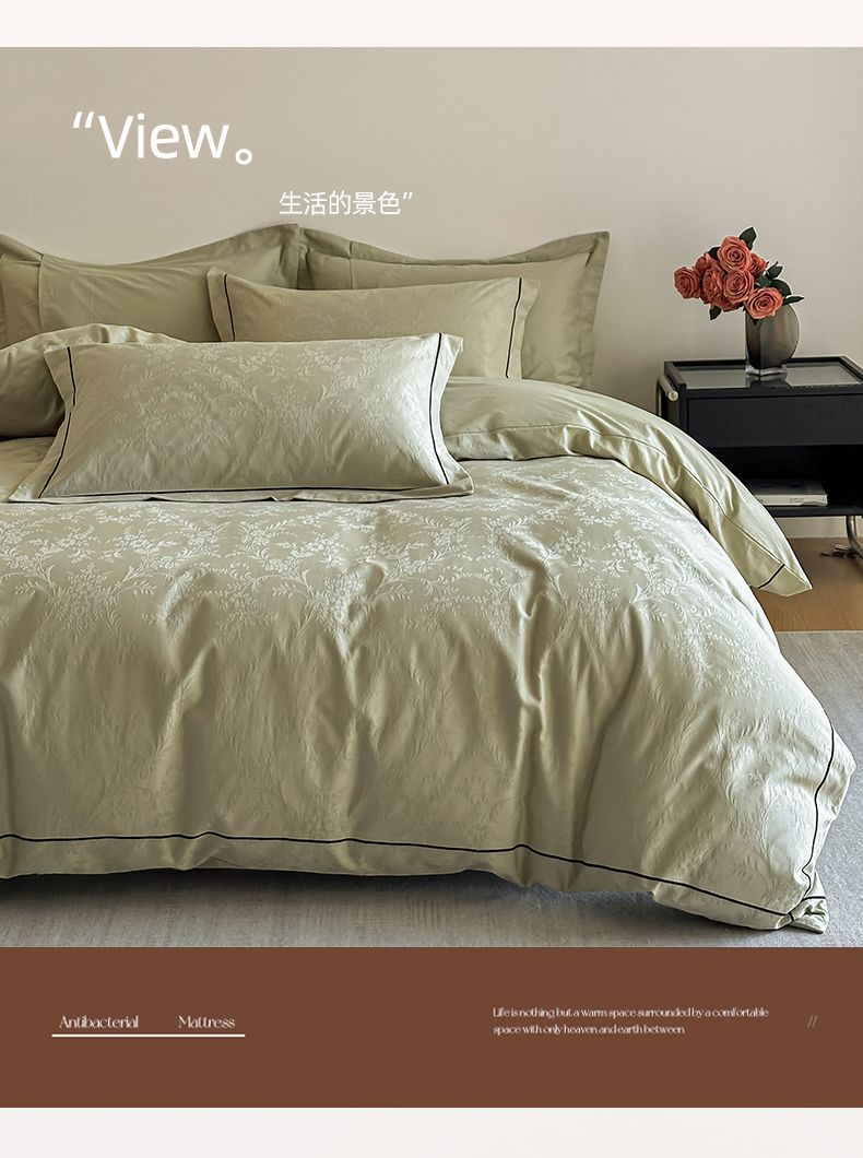 首尔家纺 2026新款浮雕提花色织全棉四件套 云枝-绿