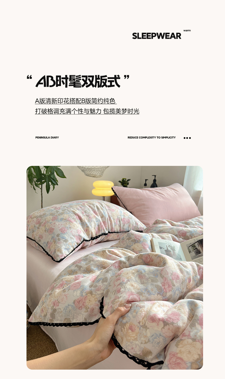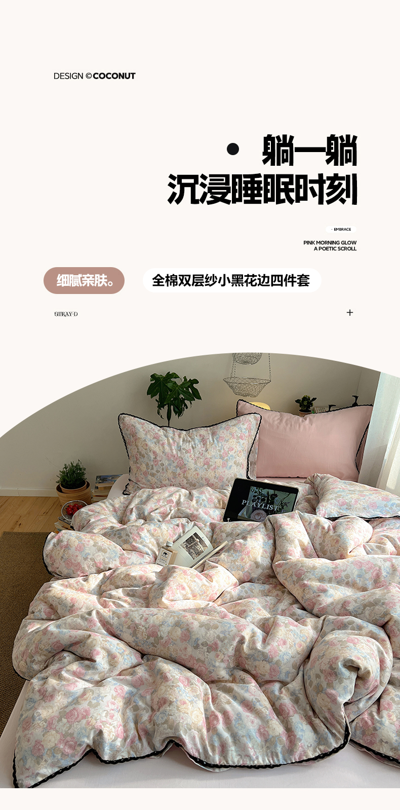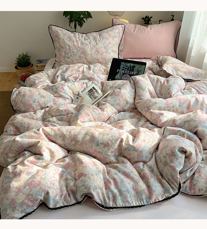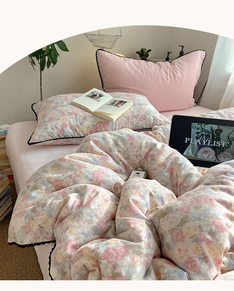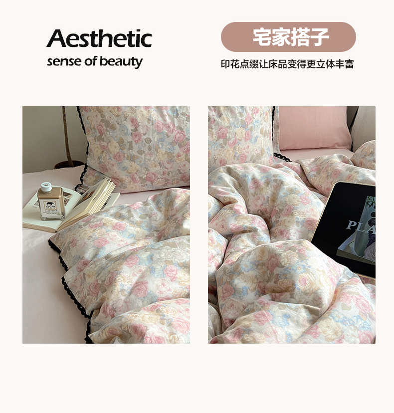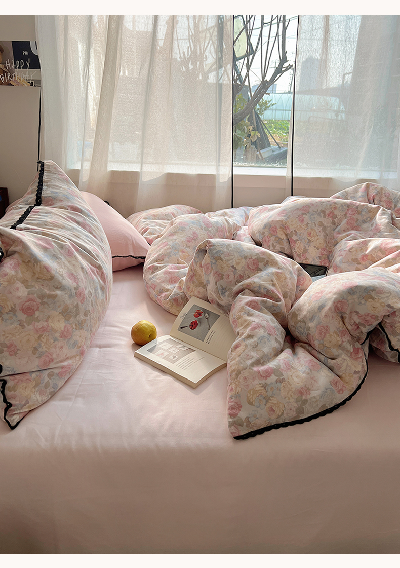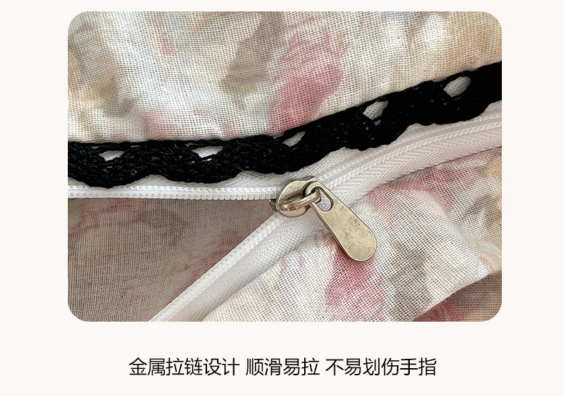 当前位置: 91家纺网 > 商品网购 > 床品套件 > 四件套 > 全棉普通四件套 > 三朵家纺 2026新款全棉纯棉双层纱小黑花边四件套 花影