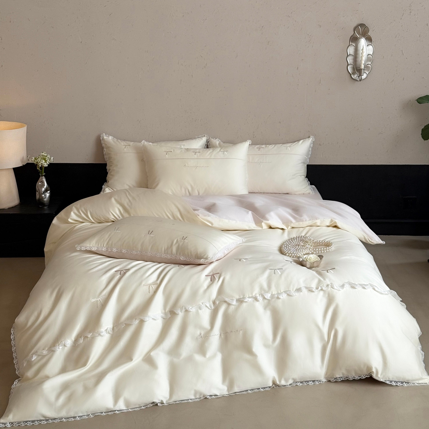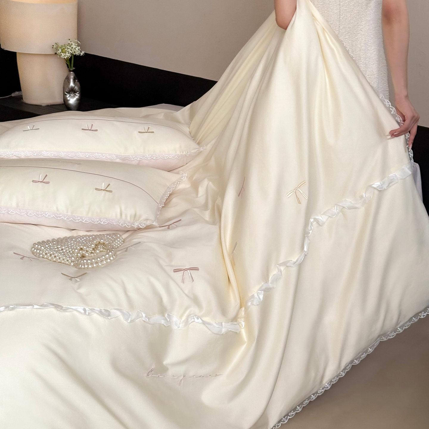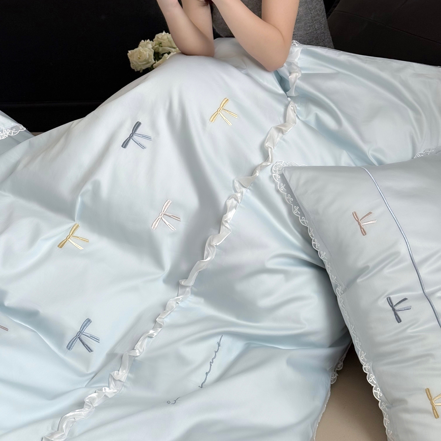 (总)佳汐蓝家纺 2026新款新疆长绒棉全棉纯棉轻奢五线刺绣四件套,初雪白,稻谷米,冷釉灰,汐雾蓝,薰衣紫,釉粉,朱砂红