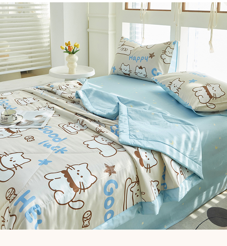 商品名称:铺尚美家纺 2026新款双面全棉羽丝空调被夏凉被单夏被 幸运猫咪