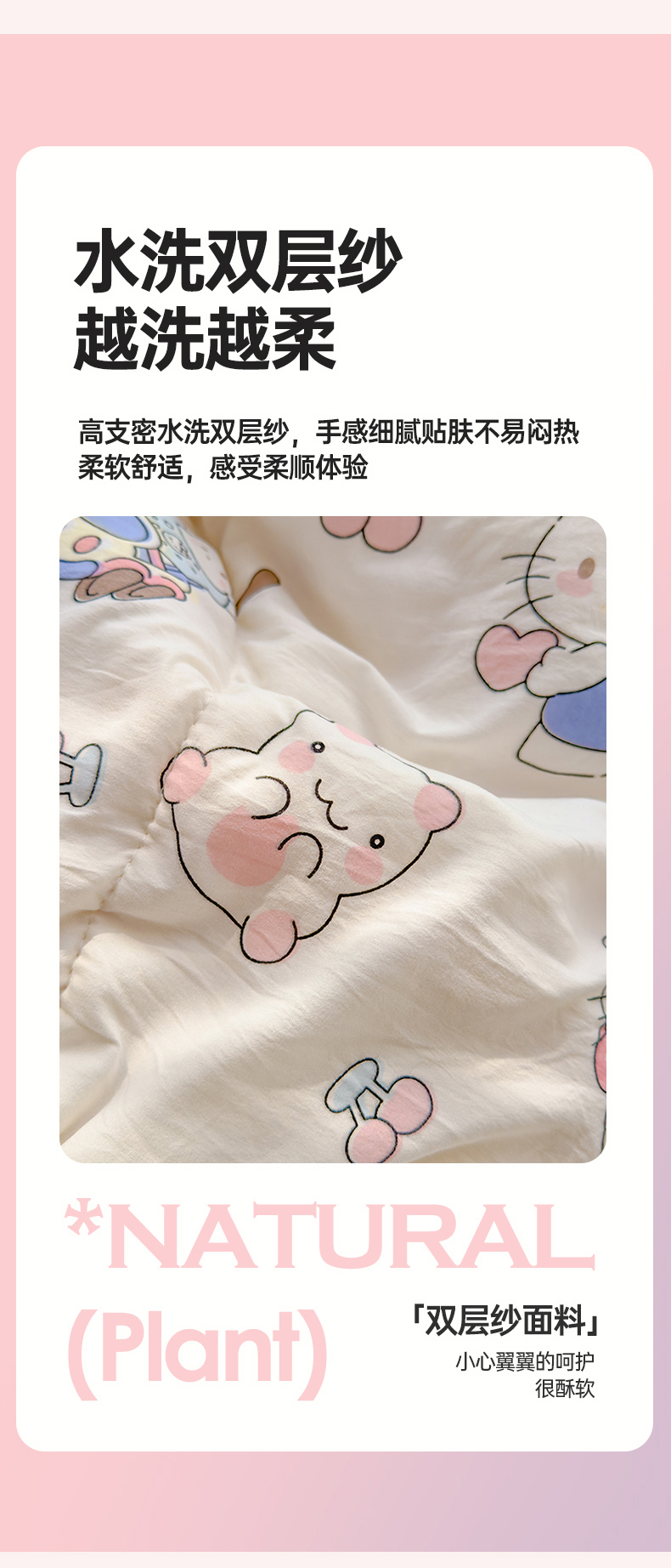 商品名称:默忆 2026新款水洗棉双层纱夏被夏凉被空调被被子被芯 凯蒂猫