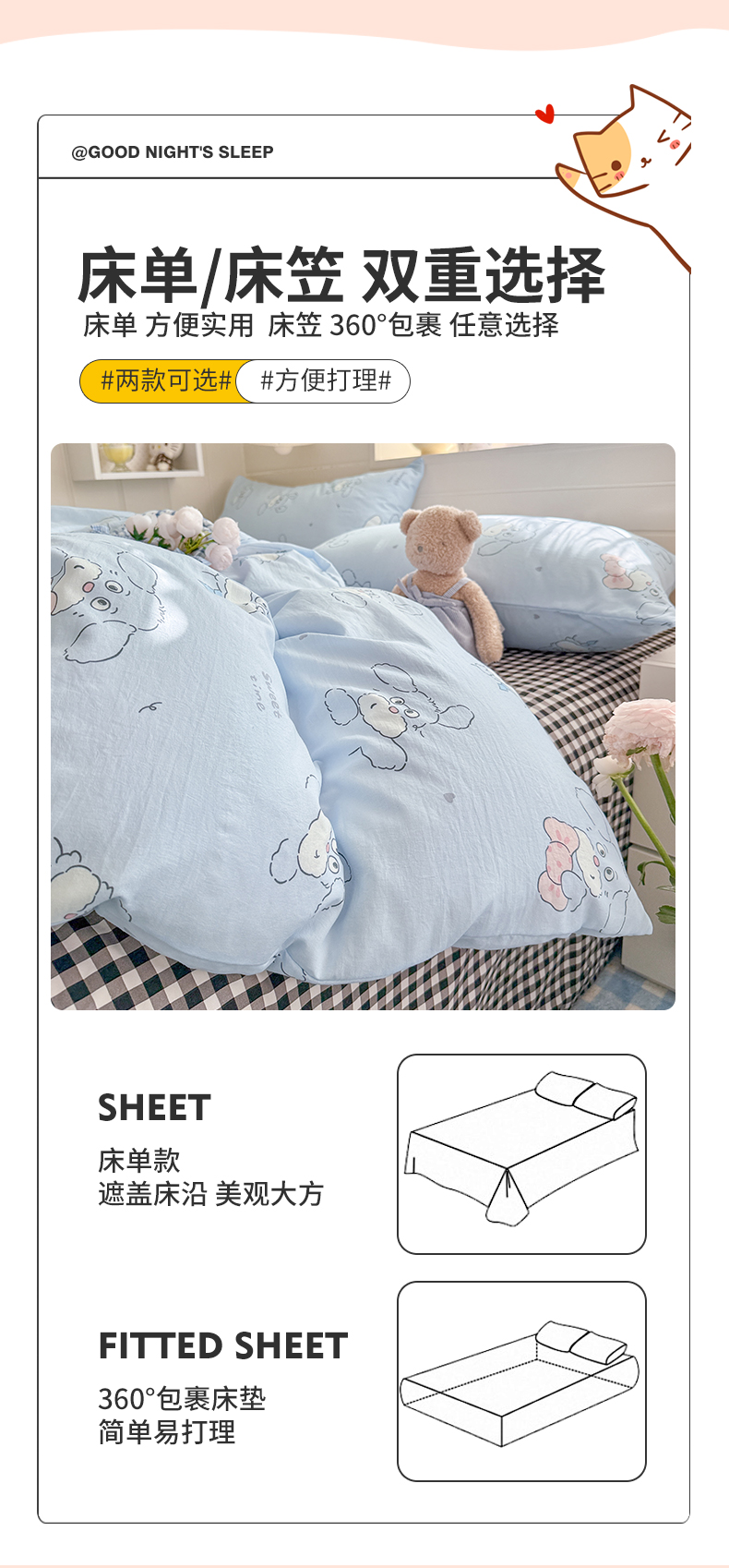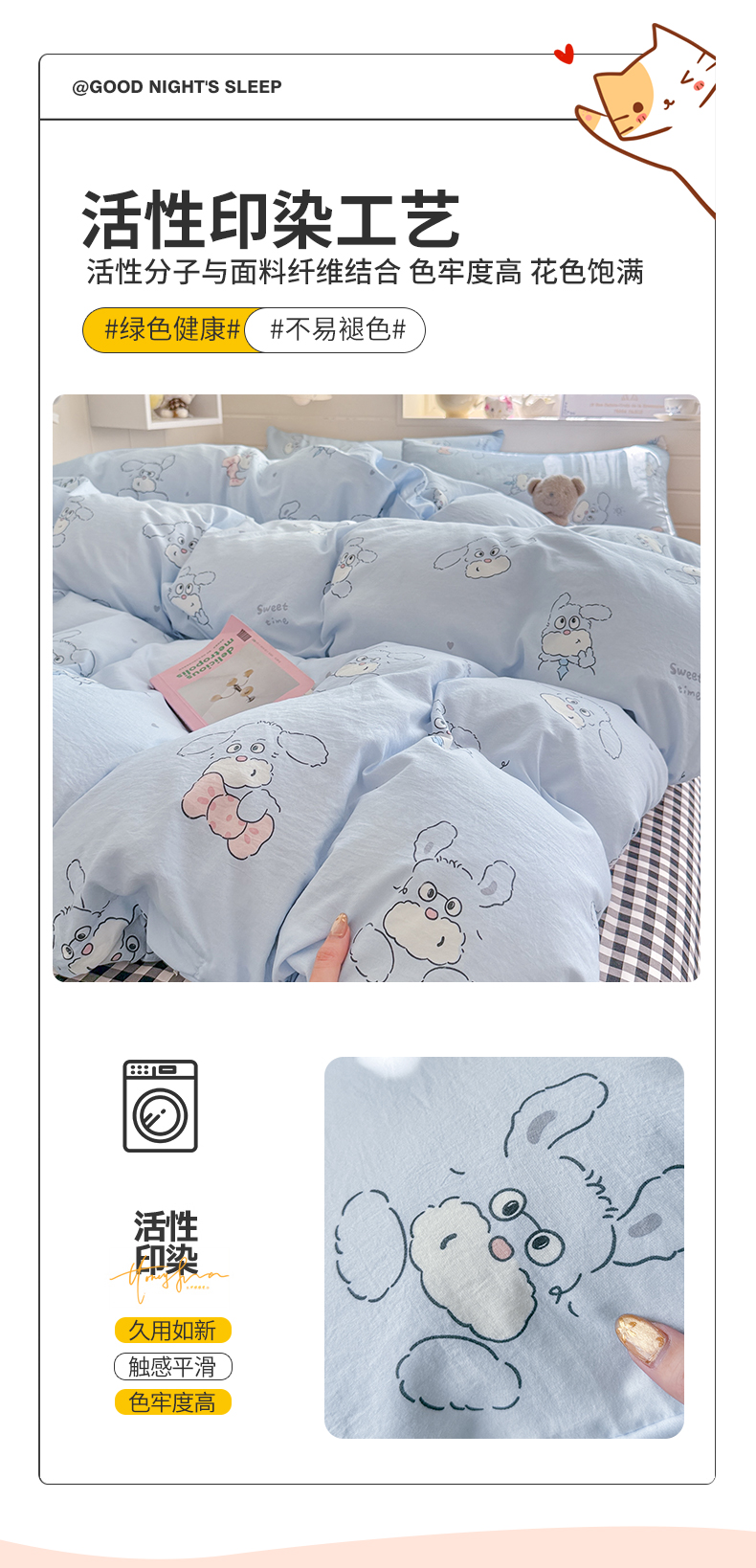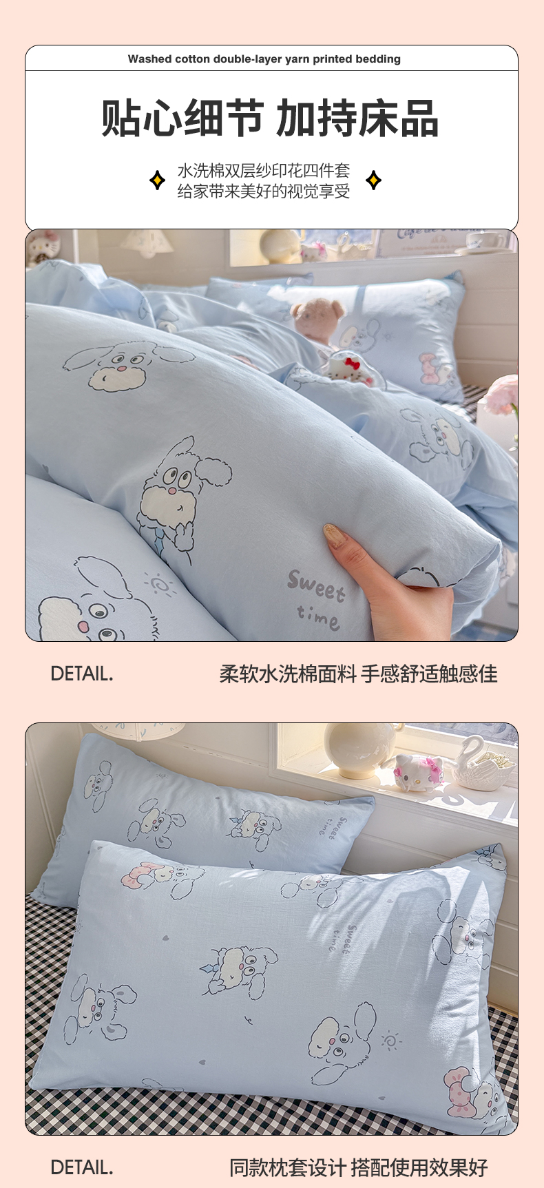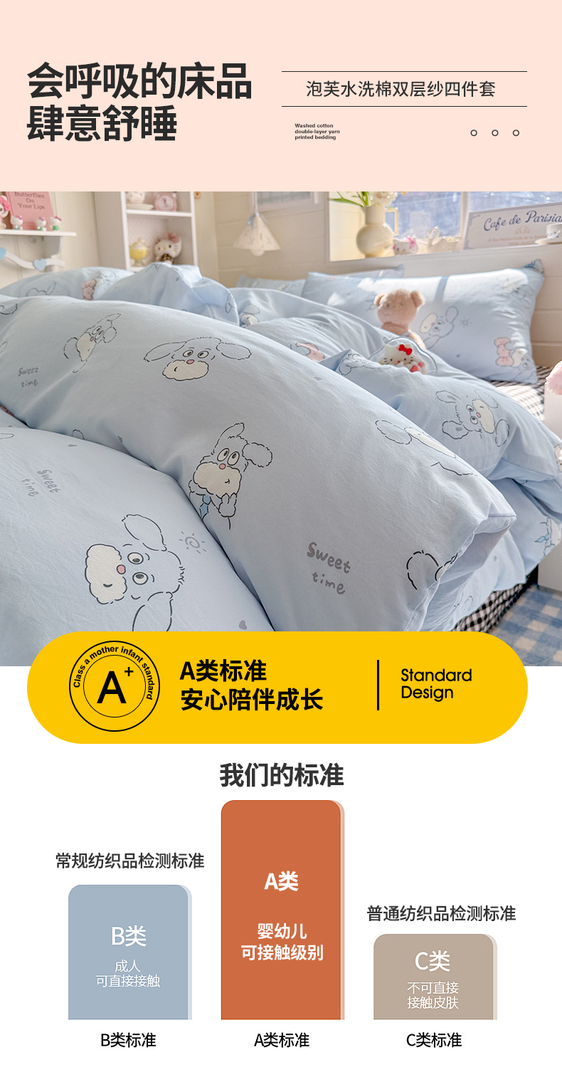 当前位置: 91家纺网 > 商品网购 > 床品套件 > 四件套 > 其它四件套 > 罗亿家纺 2026年新款泡芙水洗棉双层纱四件套 超级小狗
