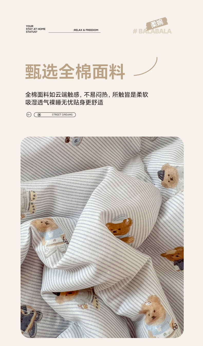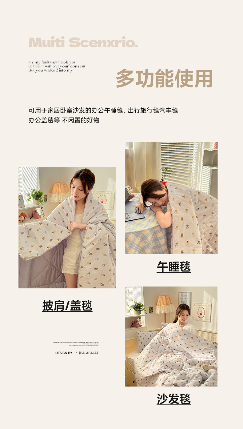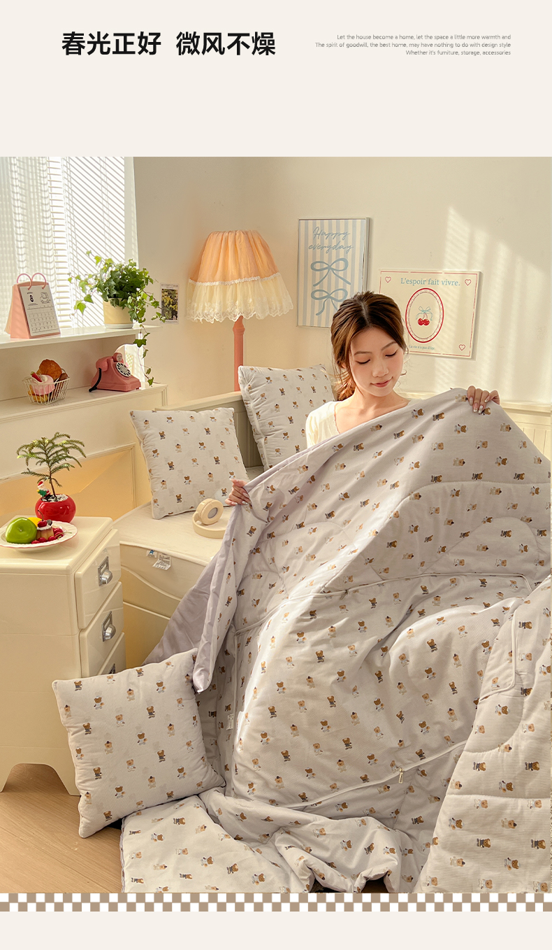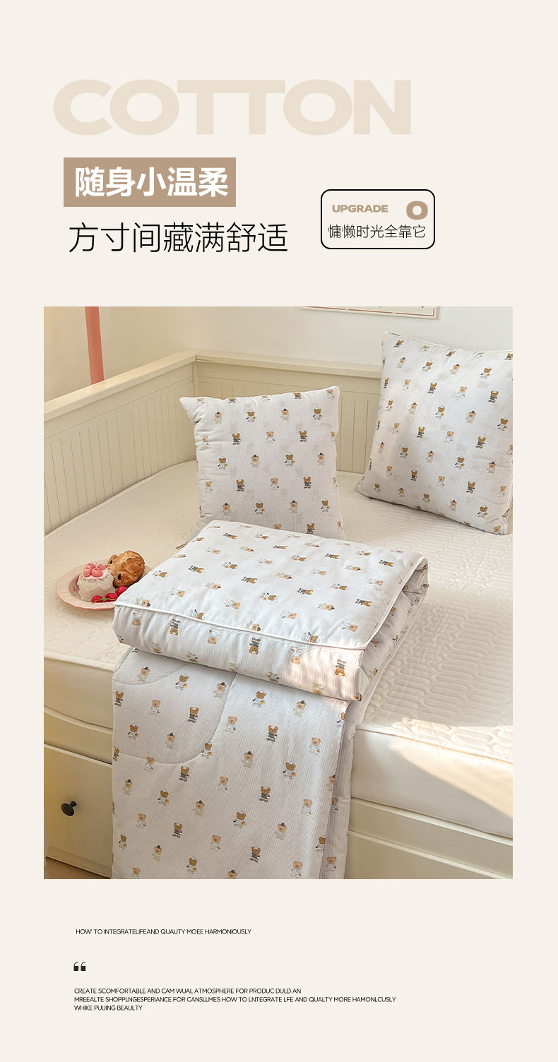 商品名称:番茄+ 2026新款全棉纯棉13070小清新卡通全棉系列抱枕被 幸运小熊