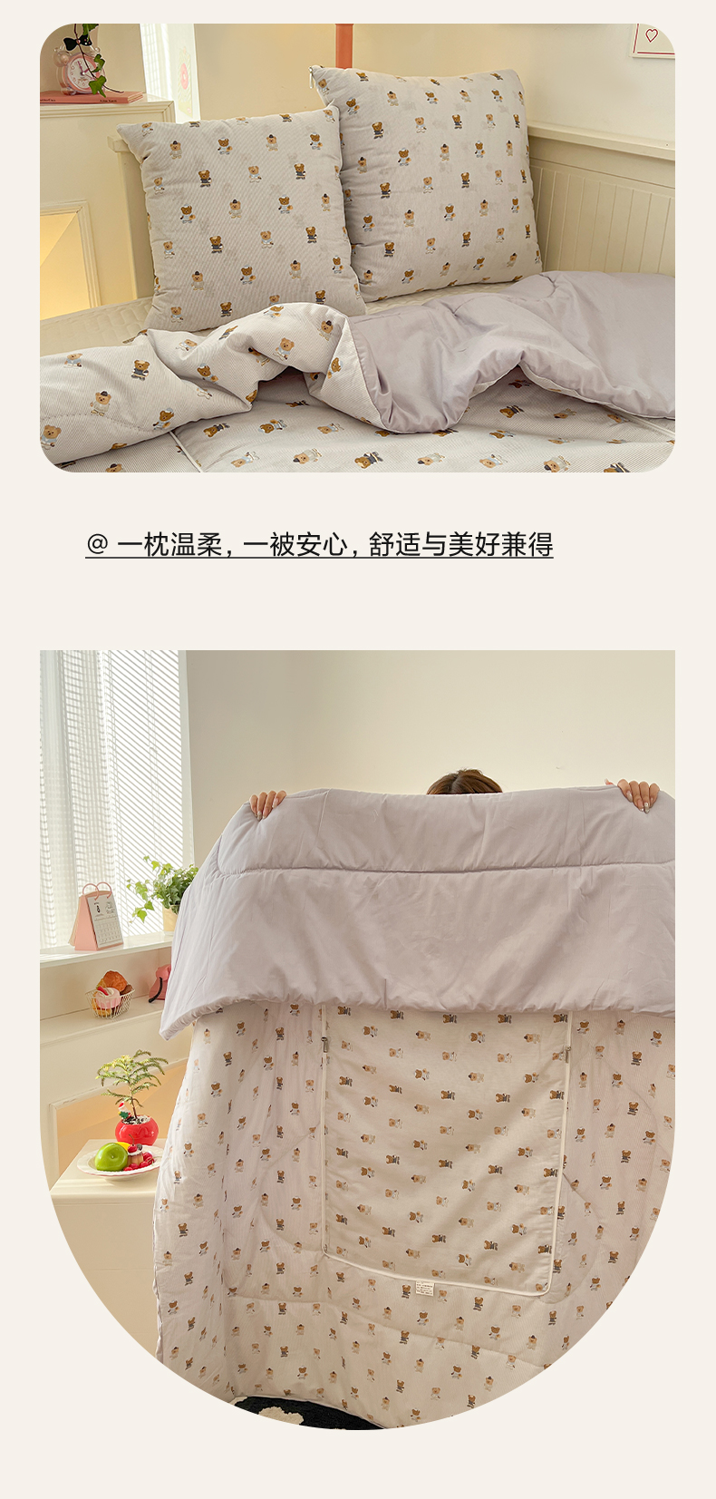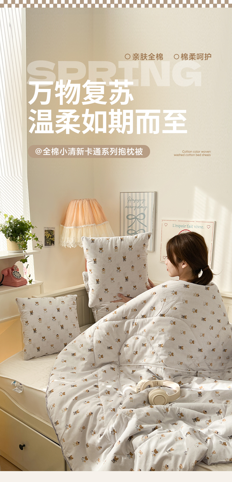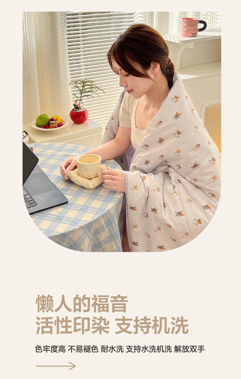 番茄+ 2026新款全棉纯棉13070小清新卡通全棉系列抱枕被 幸运小熊